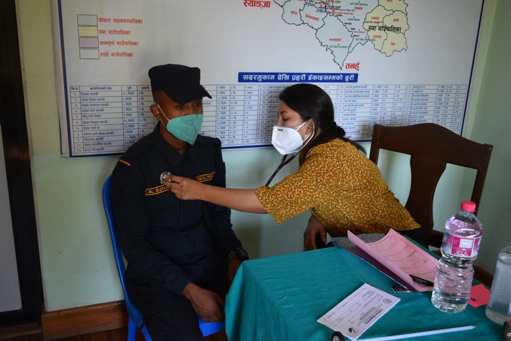 हेमजा, २५ असोज।पोखरा ४ स्थित नेलम्बो नेपालले शनिवार जिल्ला प्रहरी कार्यालय कास्कीमा निःशुल्क स्वास्थ्य शिविर संचालन गरेको छ ।त्यस अवसरमा कुल एक सय ३० जना प्रहरी सुरक्षाकर्मीको चेक जाँच गरी औषधी समेत वितरण गरियो।