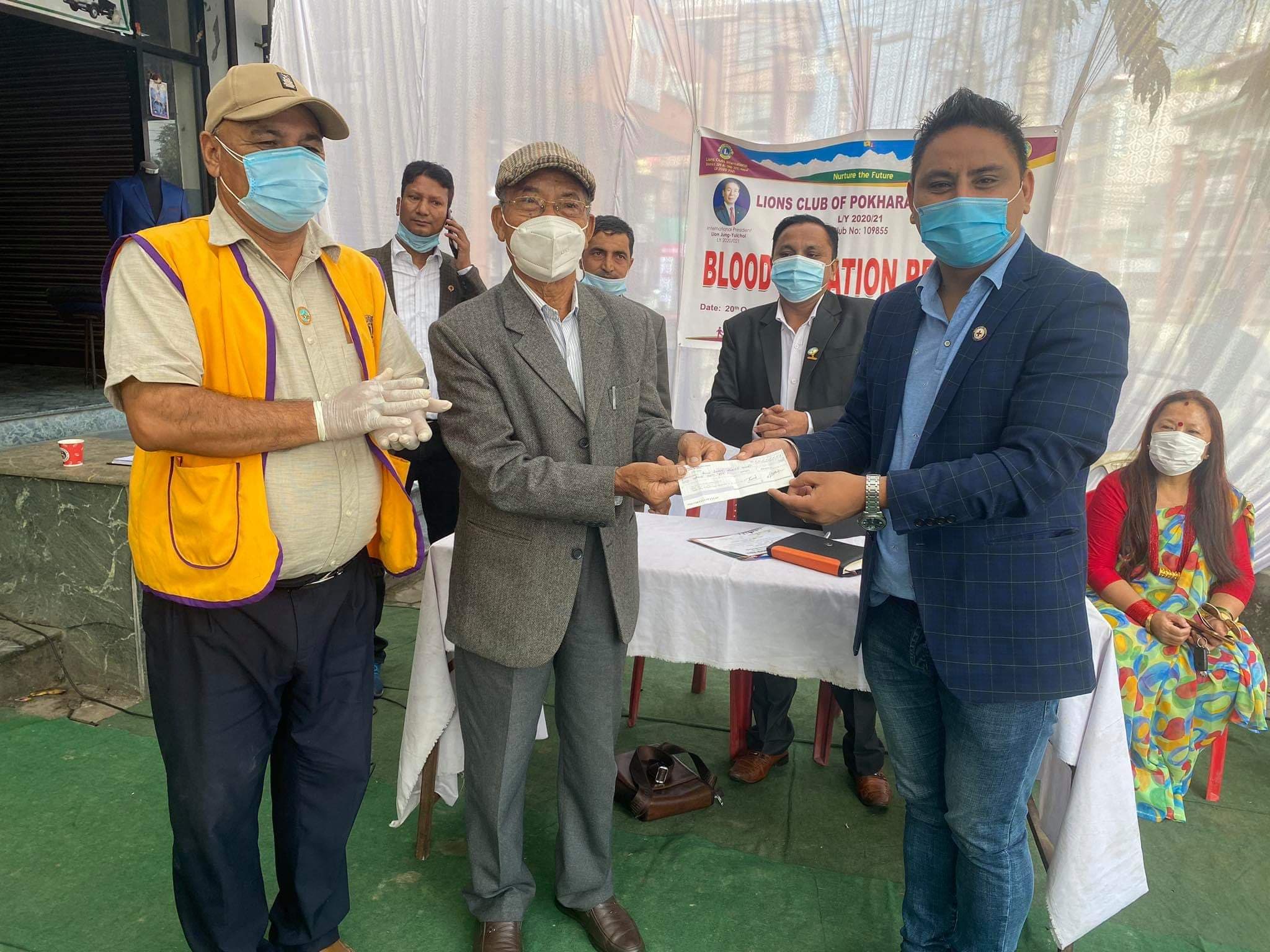 कार्यक्रममा फेवा बहुउद्देश्यीय बचत तथा ऋण सहकारी संस्था लि सृजनाचोक पोखरा(८ का अध्यक्ष ८४ बर्षिया बयोबृद्धा क्या.चन्द्र प्रसाद गुरुङ्गको अध्यक्षतामा शुभारम्भ गरिएको उक्त असहाय रक्त सहयोग चेक हस्तान्तरण कार्यक्रममा नेपाल रेडक्रस सोसाइटी जिल्ला शाखा कास्कीका कोषाध्यक्ष सुरेन्द्र गुरुङ्ग र क्षत्रिय रक्त संचार सेवा केन्द्र रामघाट का सिनियर अफिसर महेन्द्र केसी को सहभागितामा सरकारी अस्पतालमा उपचार गराउने बिपन्न परिवारका बिरामी लाई रगतमा लाग्ने शुल्क छुट गराई निशुल्क उपलब्ध गराउने उदेश्य राखी सहकारीको सिद्धान्त अनुसार सामाजिक उत्तरदायित्व शिर्षक अन्तर्गत सस्थाका अध्यक्ष क्या.चन्द्र प्रसाद गुरुङ्ग ले नेपाल रेडक्रस सोसाइटी जिल्ला शाखा कास्की का कोषाध्यक्ष सुरेन्द्र गुरुङ्गलाई २५ हजार रूपैयाँ को चेक हस्तान्तरण गर्नु भयो।