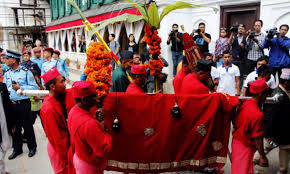 काठमाडौँ, कात्तिक ७ गते । नवरात्रको सातौँ दिन शुक्रबार घटस्थापना गरिएको स्थानमा फूलपाती भित्र्याइँदै छ । दारिम, कटुुस, उखु, अदुवा, केराको पातसँगै पुष्पगुच्छा सहितको यो फूलपातीलाई स्वच्छ र शुद्ध रहेर घटस्थापना गरिएको स्थानमा अर्पण गरिन्छ ।