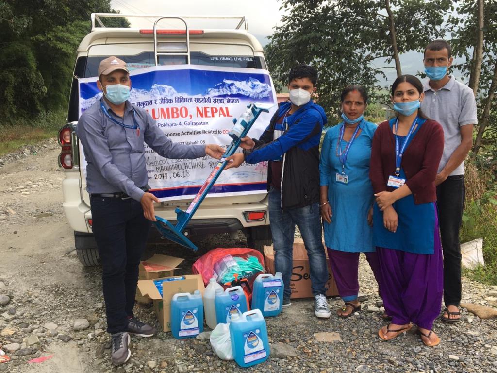 पोखरा, असोज १९ गते । हेमजा, १८ असोज।पोखरा ४ स्थित नेलम्बो नेपालले आइतवार एक कार्यक्रमका बीच माछापुच्छे« गाउँपालिका ६ स्थित भेडावारी प्राथमिक स्वास्थ्य सेवा केन्द्रलाई स्वास्थ्य सुरक्षाका सामग्री प्रदान गरेको छ ।उक्त क्षेत्रमा हाल ४ जना स्थानीयमा कोरोना भाईरस पोजेटिभ देखिएको छ।जसका लागि संक्रमण नफैलियोस र सर्तकताका साथ उपचार गर्न सहज होस् भन्ने हेतुले नेलम्बोले सहयोग गरेको हो ।