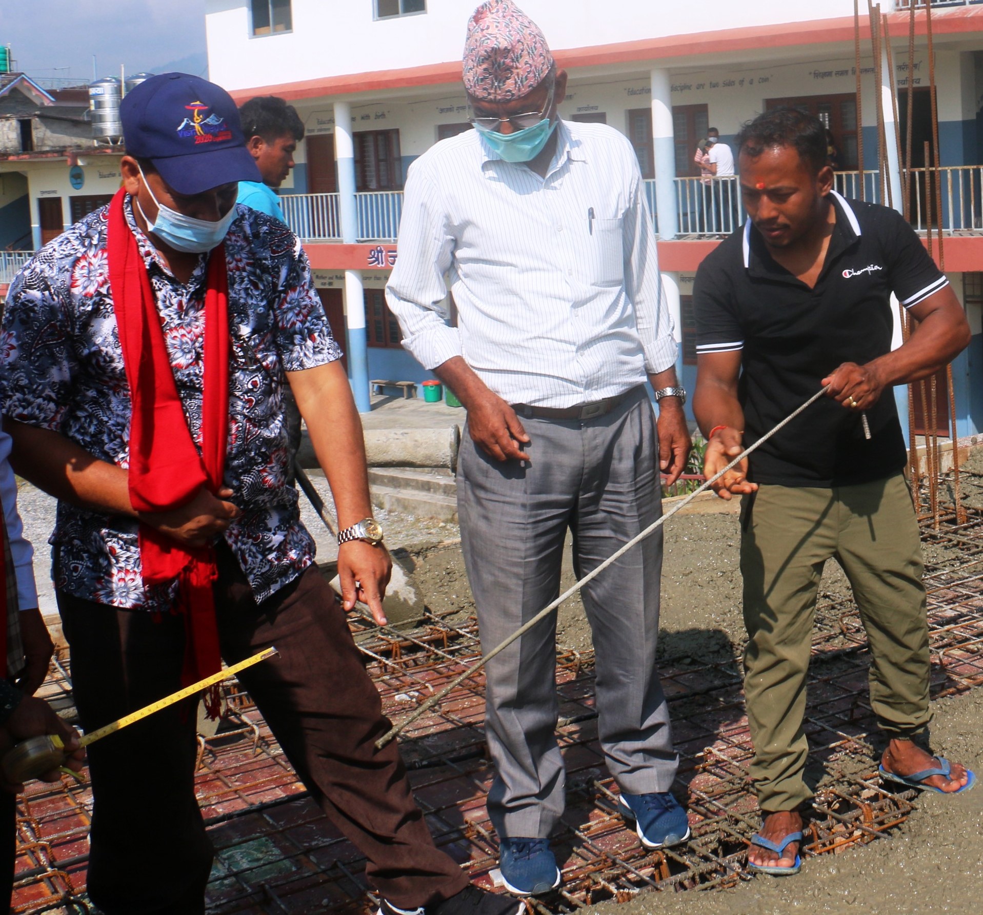 नेपाल सरकार राष्ट्रिय पुननिर्माण प्राधिकरण केन्द्रीय आयोजना कार्यान्वयन इकाई(शिक्षा) को ७४ लाख ३५ हजार रुपैयाको लागतमा निर्माणधिन भवनको समन्वय समितिका प्रमुख बैनबहादुर अधिकारी क्षेत्री, जिल्ला आयोजना कार्यान्वय इकाई(शिक्षा) प्रमुख लालप्रसाद पोख्रेल, जनप्रतिनिधिहरु समेतले संयुक्तरुपमा निर्माण कार्यको अनुगमन गर्नुभएको हो ।