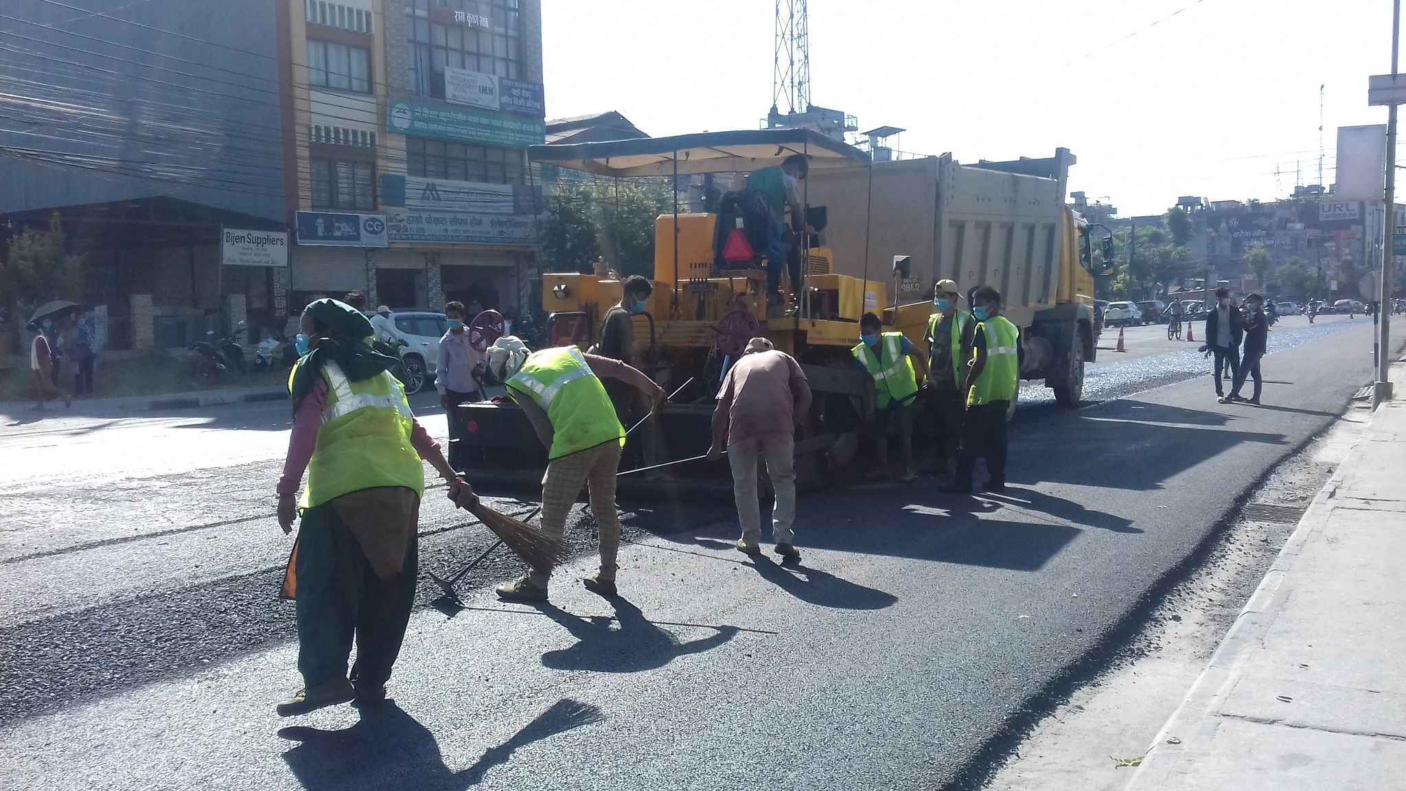 दशै अधि पीच सुरु गरिएपनि कामदार दशै मनाउन घर गएकाले रोक्किएको थियो । आइतबारबाट पीचका काम सुरुभएकोे छ ।