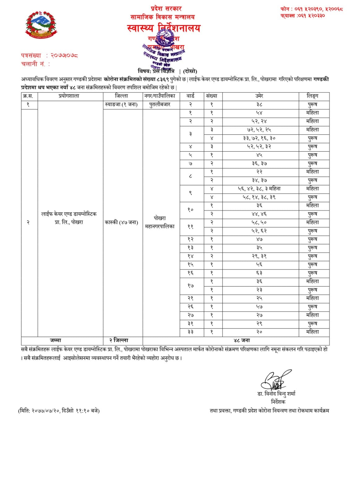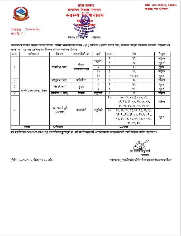 पहिलो विज्ञप्तिमा ५६, दोश्रोमा ४८, देश्रोमा ७३ र चाैथाेमा १५ जना संक्रमित थपिएको जनाएको छ ।