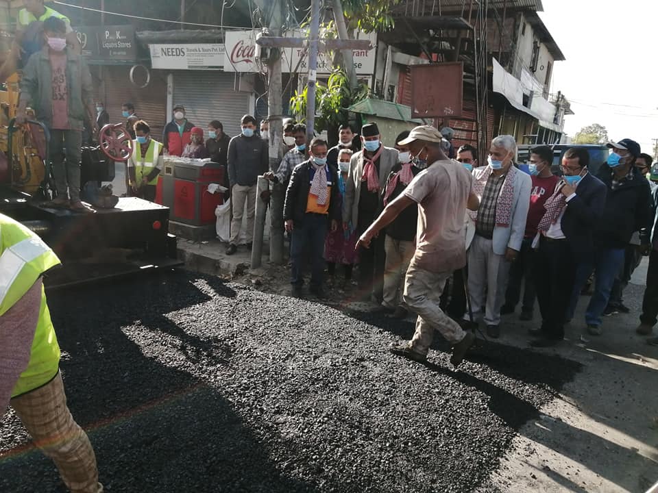गण्डकी प्रदेशका भौतिक पूर्वाधामन्त्री रामशरण बस्नेत र गण्डकी प्रदेश सांसद राजीब पहारीले संयूक्त रुपमा शुभारम्भ गर्नुभयो । मुस्ताङचोक, शहिदचोक, हल्लनचोक हुँदै जिरो कि.मी.सम्मको ५१५० मिटर लम्बाई सडक अमेरिकन प्रबिधिको अस्फाल्ट पीच गरिने छ । पोखरामा धेरै पानी पर्ने र खाल्टाखुल्टी पर्ने भएकाले सडकलाई बलियो, टिकाउ र चिल्ला बनाउन नयाँ प्रविधिको प्रयोग गरिएको हो । उक्त सडक अस्फाल्ट पीचक लागि ९ करोड ७८ लाख १३हजार ६ सय ६७ रुपैयाँमा ठेक्का सम्झौता गरि काम सुरु गरिएको हो ।