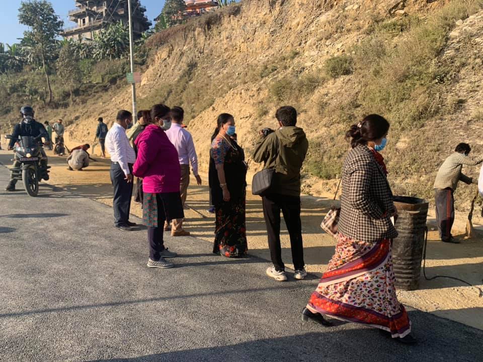 ती सडकहरु गुणस्तरहिन भएको गुनासो आएपछि उपप्रमुख गुरुङ महानगरका इन्जिनियर र जनप्रतिनिधि सहित अनुगमनमा जानुभएको हो । खपौदी पामे सडक अहिले पीच भैरहेको छ । पीच गुणस्तरहिन भएको गुनासो सामाजिक सञ्जालमा नागरिकस्तरबाट भएपनि अनुगमन गरिएको हो । माटोमा पीच गरिएको भन्दै स्थानीहरुले अनुगमन गर्न आग्रह गदै सामाजिक सञ्जालमा पोष्ट गरिरहेका थिए । उक्त कुरा जानकारी पाएपछि उपप्रमुख गुरुङ आफनै प्राविधिक लिएर अनुगमना जानुभएको हो ।