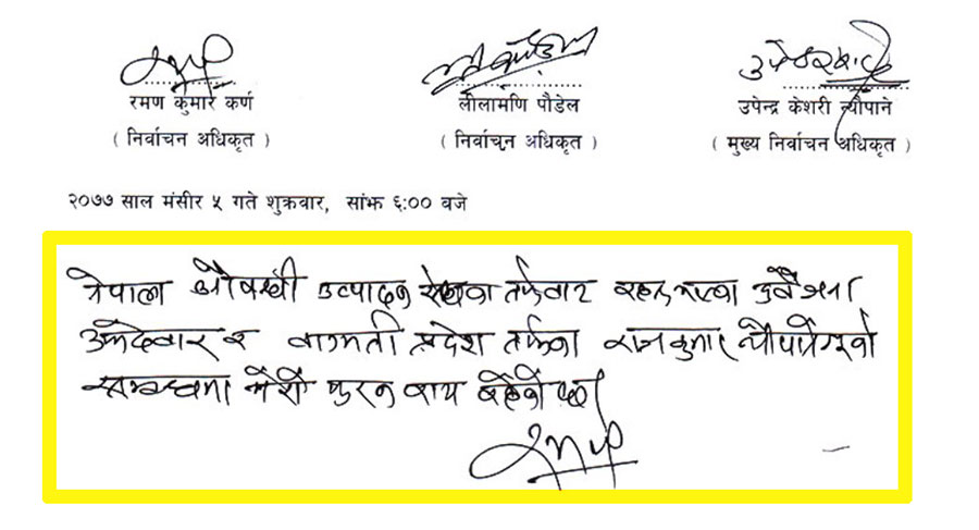‘मकवानपुरका पुर्व अध्यक्ष राजकुमार न्यौपानेले रामेछापमा कहिले कुन कार्यकाल पुरा गरे र निर्वाचन समितिले विधानमा भएको व्यवस्था विपरित उनको उम्मेदवारीलाई स्वीकृत गर्यो ?’ ती उम्मेदवारले प्रश्न गरे । ‘उपेन्द्रजीको नातेदार भएका कारण राजकुमार जी को मनोनयन उपर कुनै कार्वाही नगरिएको हो’ उनले भने ।
