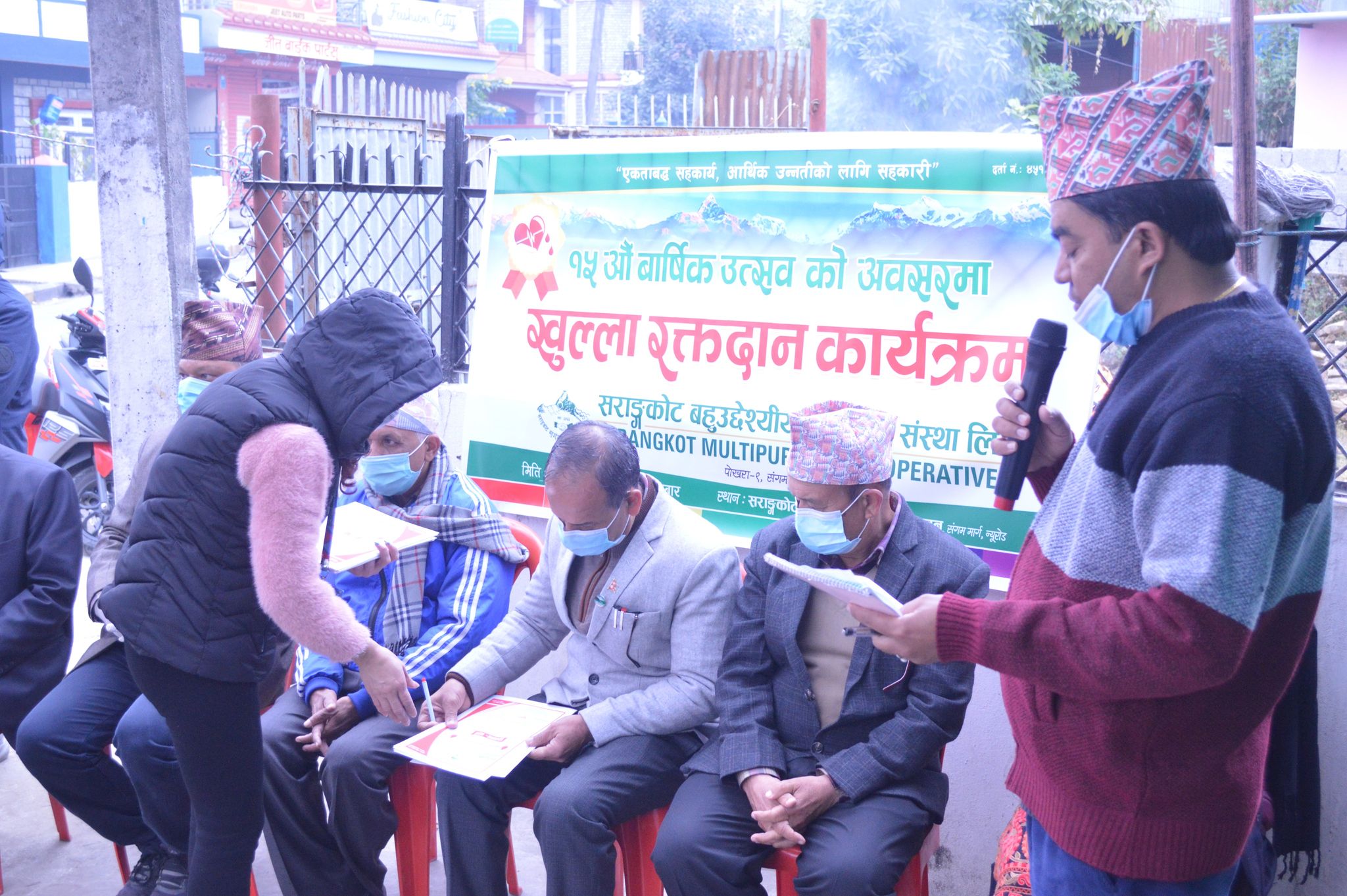 पोखरा, मंसिर २७ गते । सराङ्गकोट वहुउद्देश्यीय सहकारी संस्थाको १५ औं वार्षिक उत्सव अवसरमा गरिएको रक्तदान कार्यक्रममा ३२ युनिट रगत सङ्कलन भएको छ ।