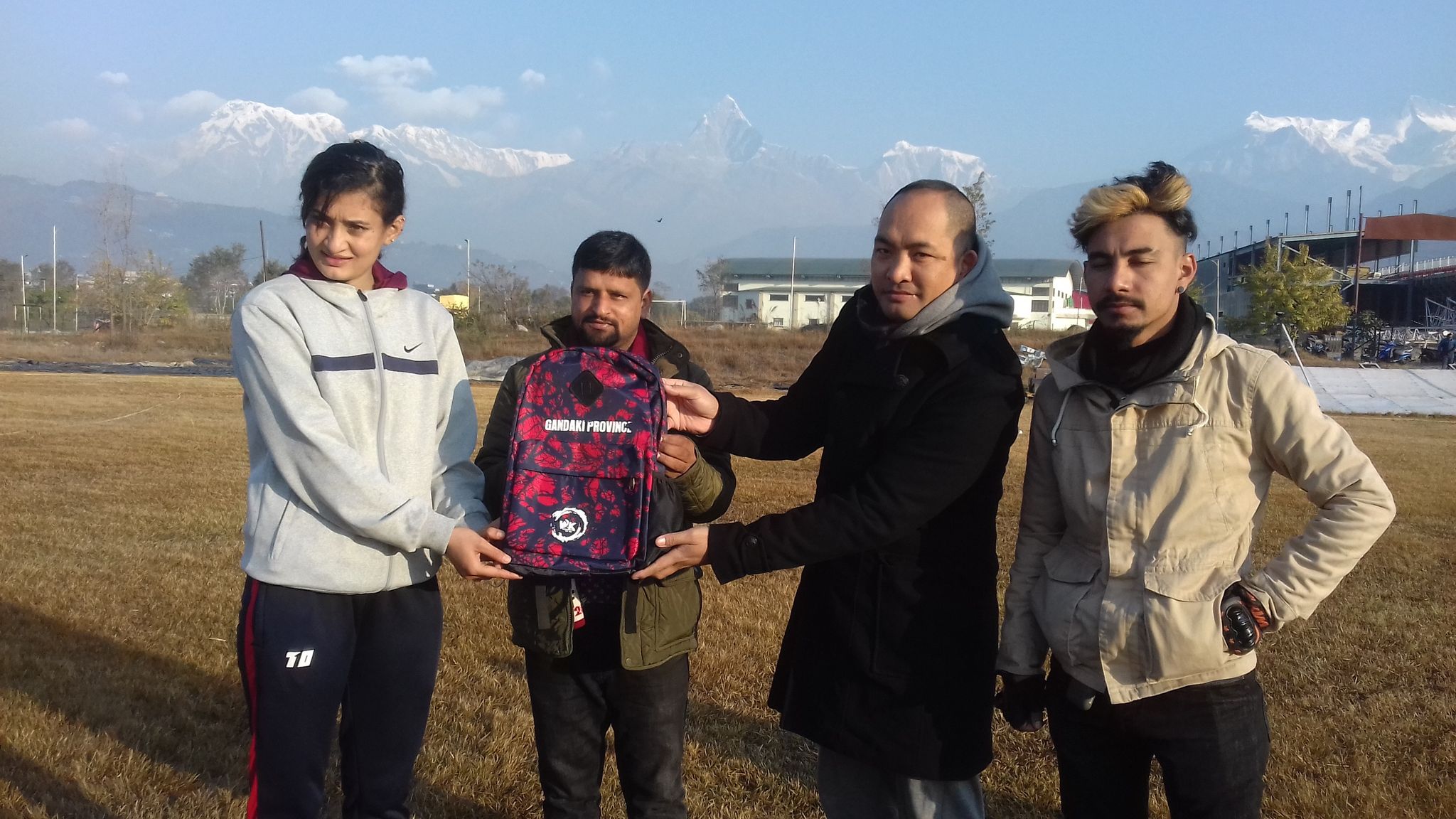वाइन किङ तथा पूर्व क्रिकेट खेलाडी विरेन्द्र पुनले १७ वटा झोला र सुर्योदय डान्स टेनिंग सेन्टरका कुर्वान अलिले १७ वटा ट्रयाक सुट सहयोग गर्नुभएको हो । पोखरा रंगशालाको क्रिकेट मैदानमा आयोजित कार्यक्रममा झोला र ट्रयाक सुट गण्डकी प्रदेश महिला क्रिकेट टिमका कप्तान सिला रेग्मी क्षेत्रीलाई खेलकुद पत्रकार मञ्च गण्डकीका अध्यक्ष एकराज गिरी, वाइन किंङका सञ्चाल विरेन्द्र पुन र सुर्योदय डान्स सेन्टरका कुर्वान अलिले हस्तान्तरण गर्नुभयो ।