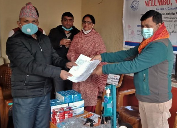 त्यस अवसरमा ज्वरो नाप्ने थर्मल गन, माक्स, फेस सिल्ड, हेण्ड फ्रि सेनिटाइजर स्ट्याण्ड, स्प्रे बोतल, साबुन लगायतका स्वास्थ्य सामग्रीहरु प्रदान गरिएको हो ।संस्थाका अध्यक्ष एकदेव देवकोटाले प्रधानाध्यापक अनिता सिग्देल र विद्यालयका अध्यक्ष ऋषिराम पौडेललाई सामग्री हस्तान्तरण गरेका हुन्।