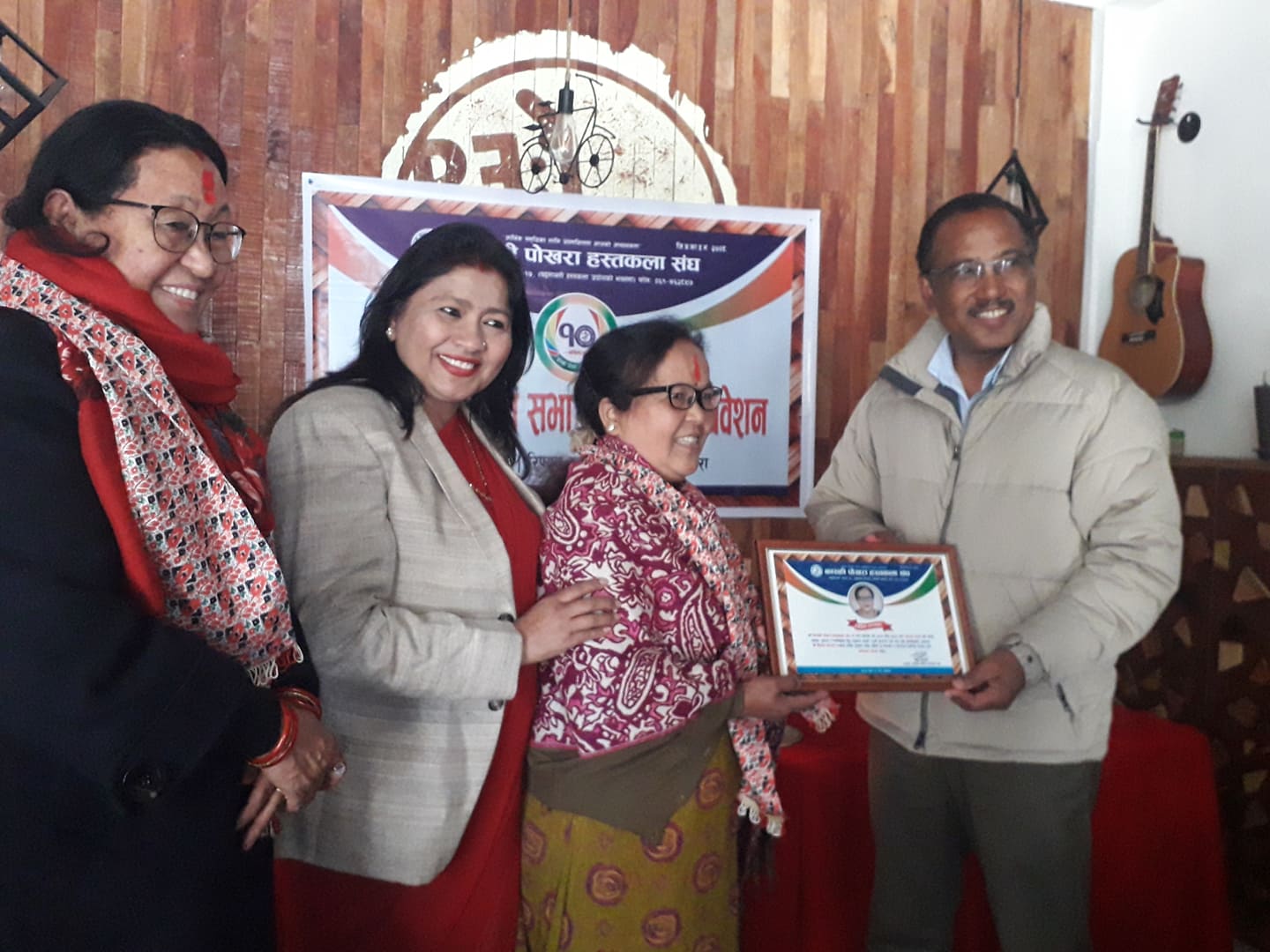 पोखरा, पुस १९ गते ।कास्की पोखरा हस्तकला संघको अध्यक्षमा रामकली खड्का सर्वसम्मत चयन हुनुभएको छ ।शनिबार एक कार्यक्रमकाबीच संघको १० औँ साधारणसभा तथा तेस्रो अधिवेशनले उपाध्यक्षमा सीता गुरूङ, सचिवमा बुद्धि पुर्जा र कोषाध्यक्षमा गोमा ढकाल चयन हुनुभएको छ ।