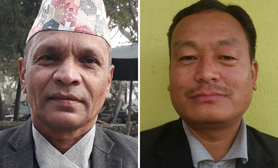 प्रचण्ड-माधव समूहमा रहेका गण्डकी प्रदेशका मन्त्रीहरु हरिबहादुर चुमान (बाँया) र लेखबहादुर थापा ।