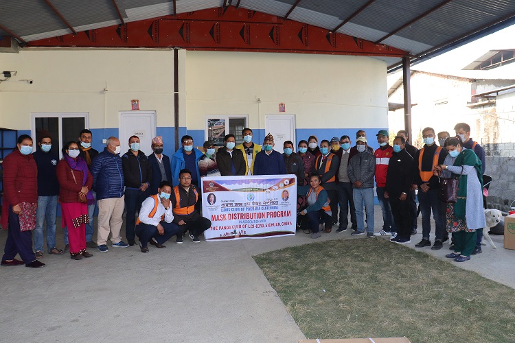 पोखराका बिद्यालय विर आधारभूत बिद्यालय, विन्यवासिनी मावि (वाटुलेचौर), इन्द्रराज्य लक्ष्मी मावि, छोरेपाटन मावि, राष्ट्रिय मावि, रत्न राज्य कन्या स्कुल, वालमन्दिर स्कुल, बाराही मावि, ताल बराही मावि, जनप्रिय मावि, नविन मावि,भद्रकालि मावि, महेन्द्र मावि, नव प्रभात मावि, सहारा आधारभूत बिद्यालय, अम्मरसिंह मावि, विन्ध्यवासिनी मावि (वरपाटन) , कल्याण आधारभूत स्कुल, र श्रीराम आधारभूत स्कुललाई जनही २ हजार ५ सय वटा मास्क वितरण गरिएको हो । यस अघि क्लवले नेपाल पत्रकार महासंघ कस्की शाखालाई १० हजार वटा मास्क वितरण गरेको क्लवका निवर्तमान अध्यक्ष विजेश पालिखेले बताए । काठमाण्डौंमा २५ हजार वटा मास्क वितरण गरेको क्लवले अन्य मास्क आवश्यकताको आधारमा वितरण गर्ने जनाएको छ । क्लवले यस अघि विभिन्न सामाजिक कार्य गर्ने क्रममा चाइनाको विभिन्न क्लवसंगको सहकार्यमा नेपालमा आखाँ शिविर समेत आयोजना गरेको निवर्तमान अध्यक्ष पाखिलेले जनाए ।
