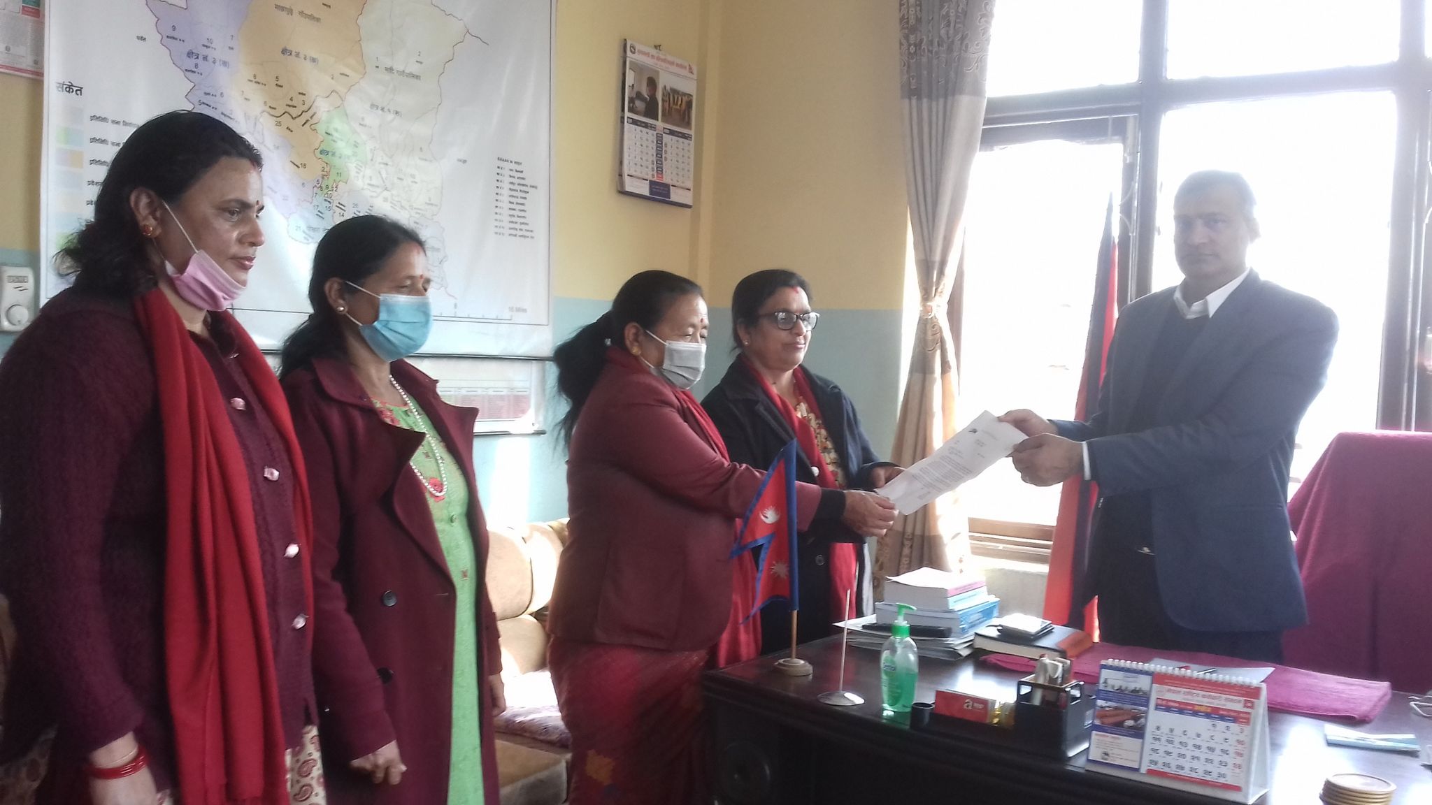 पोखरा, पुस २७ गते । राष्ट्रपति तथा प्रधानमन्त्री विरुद्ध आपत्तिजनक र अपमानजनक नारा लगाउनेहरुलाई कारबाहीको माग गदै अखिल नेपाल महिला संघ कास्कीले जिल्ला प्रशासन कार्यालयमा ज्ञापनपत्र बुझाएको छ । अखिनले नेपाल महिला सघ केन्द्रीय सदस्य एवं गण्डकी प्रदेश सांसद मित्रकुमारी गुरुङ सुवेदीको नेतृत्वमा कास्कीका प्रमुख जिल्ला अधिकारलार्ई ज्ञापनपत्र बुझाएको हो ।