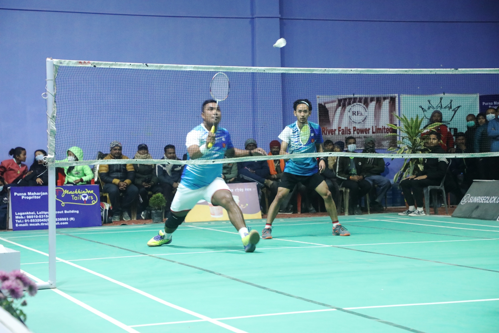 क्वाटरफाईनलमा एपिएफका दीपेश धामी र बिजित थापामगरको जोडीलाई पराजित गर्दै सनसनी मचाएको महर्जनको जोडीले सेमिफाईनलमा सेनाकै प्रफुल महर्जन र रुकेश महर्जनको जोडीमाथी जित निकाल्दै उपाधी निकट पुगेको हो । सुरोज र लिनथेपको जोडीले १८।२१, २१।१५, २१।१३ को जित निकालेको हो । अव महर्जनको जोडीले सेनाकै नविन श्रेष्ठ र रत्नजित तामाडको जोडी संग प्रतिस्पर्धा गर्नेछ । रत्न र नविनको जोडीले बाँकेका ईरफान अन्सारी र धादिङ्गका सुदीप सेंढाईको जोडीमाथी २१।१०, २१।१६ को जित निकालेको हो ।