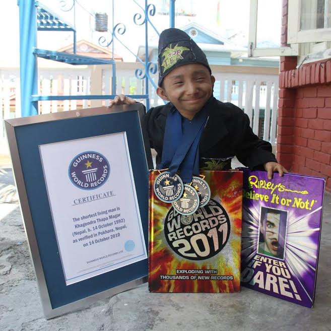 पोखरा, माघ ५ गते । होचा व्यत्तिको रुपमा विश्व कीर्तिमानी कायम गरेका खगेन्द्र थापा मगरको प्रथम स्मृति सभा सम्पन्न गरिएको छ । कीर्तिमानी खगेन्द्रले २०६७ सालमा विश्वकै होँचा व्यक्तिका रुपमा गिनिज वुक अफ वल्र्ड रेकर्डमा नाम लेखाउन सफल भएका उनको निधन भएको एक बर्ष पश्चात सोमबार पोखरामा प्रथम स्मृति सभा सम्पन्न गरिएको खगेन्द्र थापा मगर प्रतिष्ठानले जनाएको छ ।