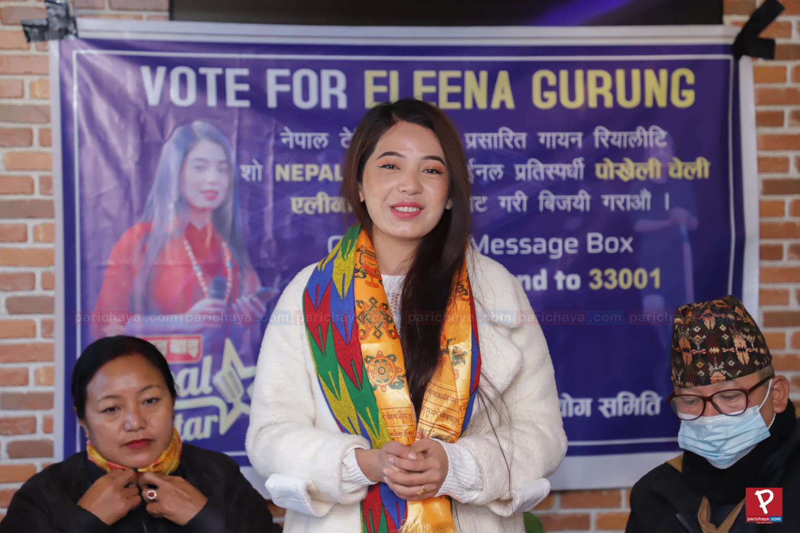 शनिबार फाइनल प्रवेश पश्चात आइतवार गृहनगर पोखरा आएकी एलिनालाई पोखरेलीको भव्य स्वागत गरिएको थियो भने मंगलवार अपरान्ह पोखरा १२ चापापानीस्थित चिउली पार्चे तमु समाजमा स्वागतार्थ सांगितीक कार्यक्रम गरिने सोमवार पत्रकार सम्मेलन गरी जानकारी गराइएको हो।पोखरेली चेलीलाई नेपाल स्टारको उपाधि चुमाउन प्रचार प्रसारका साथै स्वागतका लागि आयोजना गरिने सांगितीक कार्यक्रममा एलिना गुरुङ, हार्मोनी समुहसहित पोखरेली कलाकारहरु प्रस्तुति हुने बताइएको छ।