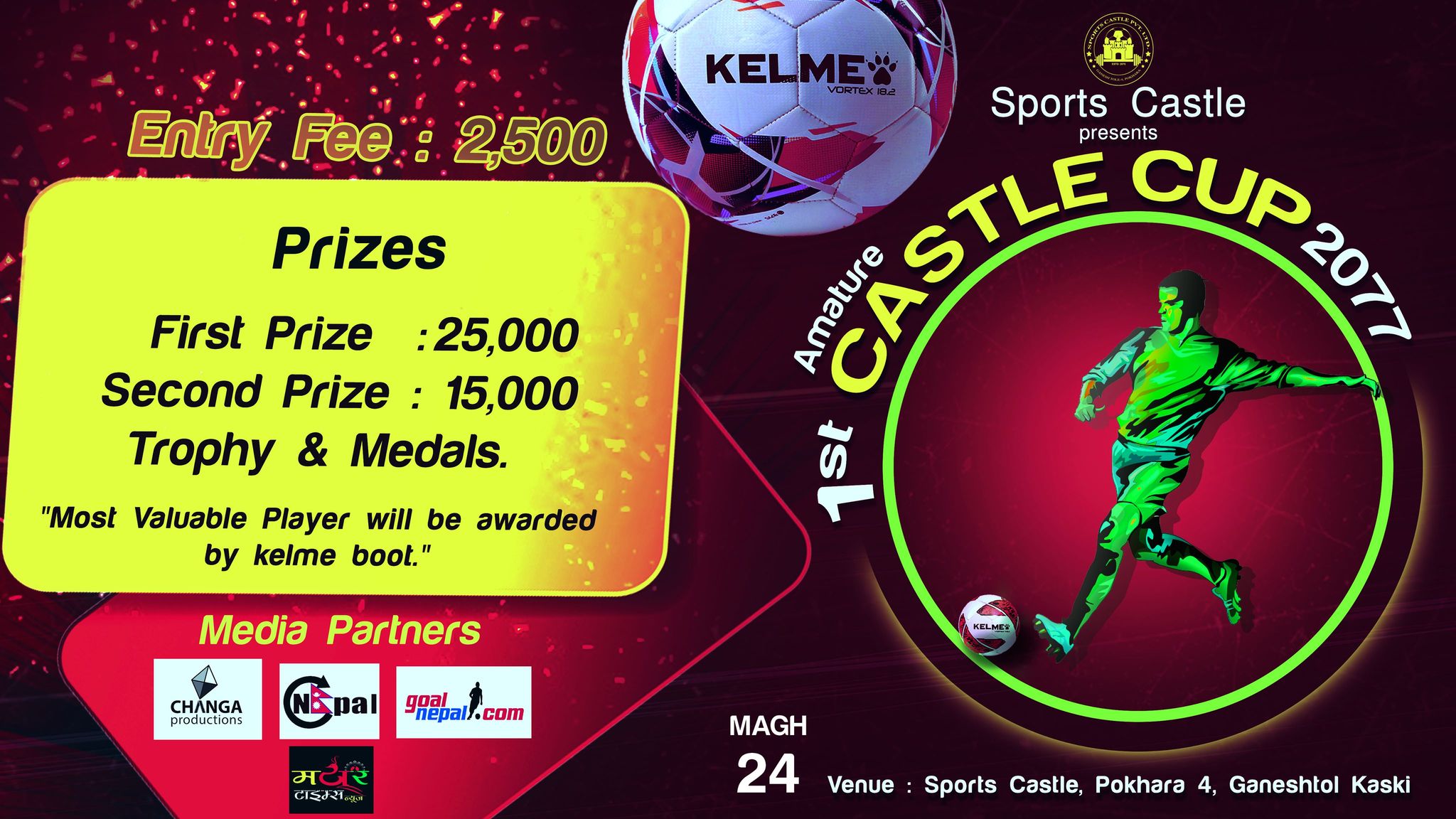 पोखरा, माघ ६ गते ।पोखरा महानगरपालिका ४ गणेशटोल स्थित सञ्चालनमा रहेको स्पोर्टस् क्यासल प्रा.लिले पहिलो संस्करणको ‘एमेचुअर क्यासल फुटसल कप –२०७७’ आयोजना गर्ने भएको छ ।उदीयमान खेलाडीहरुलाई लक्षित गरी आगामी (माघ) २४ गते गणेशटोल स्थित स्पोर्टस् क्यासलको फुटसल मैदानमा एक दिने ‘फाईभ ए साईड फुटसल’ प्रतियोगिताको आयोजना गर्न लागेको हो ।