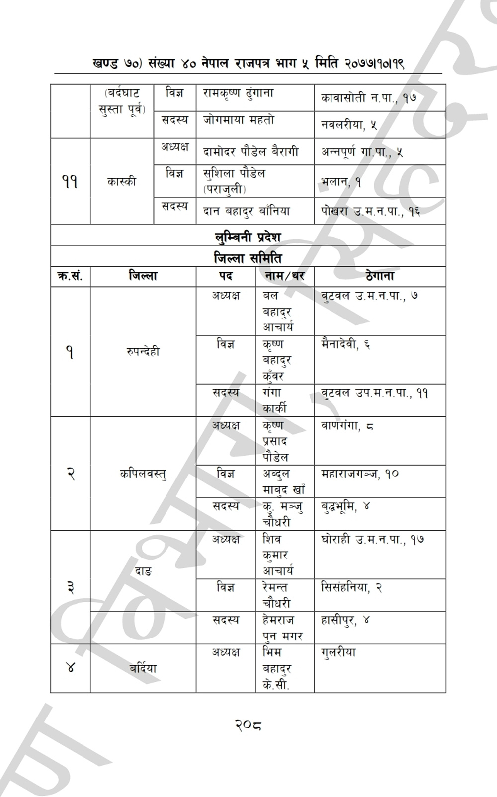 ७७ जिल्ला अध्यक्ष र २ सदस्यगरी ७७ जिल्लामा २ सय ३१ जना जिल्ला समितिका पदाधिकारी सरकारले नियुक्त गरेको हो । भूमि सम्बन्धी समस्या समाधान आयोगका अध्यक्ष देवी ज्ञवाली छन । आयोगका जिल्ला पदाधिकारीको सपथग्रहण माघ २४ गते आयोगका अध्यक्ष देवी ज्ञवालीले प्रधानमन्त्री केपी शर्मा ओलीको उपस्थितिमा गराउने मन्त्री डां.शिवमाया तुम्बाहाङ्फेले जानकारी दिएकी दिनुभयो ।