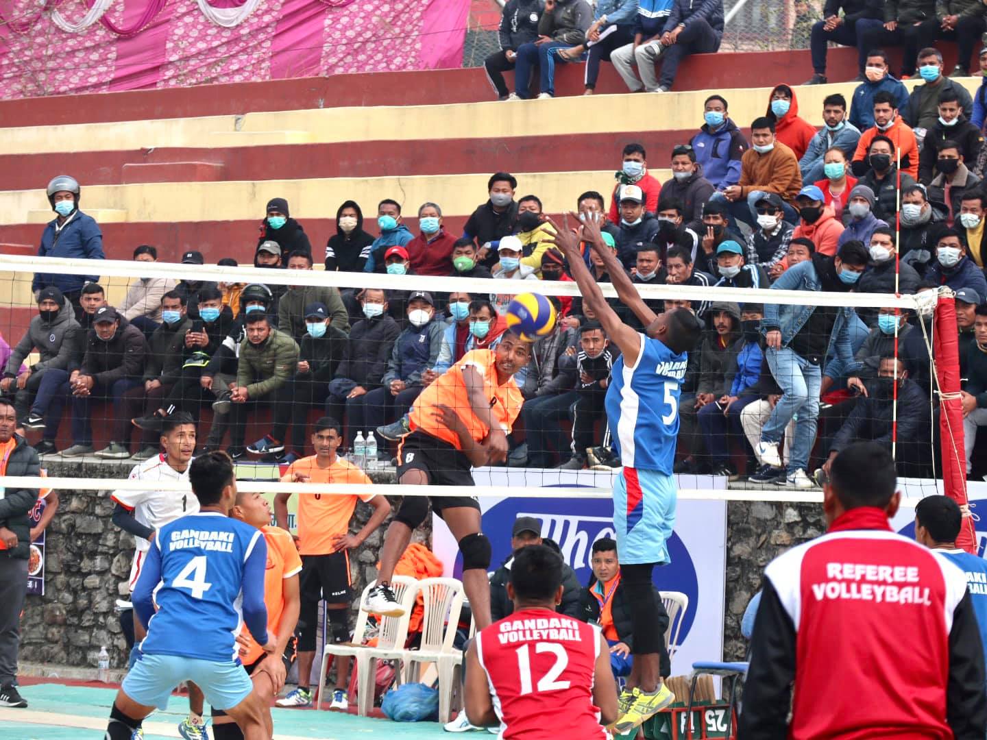 गण्डकी प्रदेशले शसस्त्र प्रहरीलाई ३–० सोझो सेटमा पराजित गर्दै फाईनलमा प्रवेश गरेको हो । गण्डकीले फाईनल प्रवेश सहज बनाउन २५–२१,२९–२७ र २५–१५ ले सशस्त्रलाई पाखा लगायो । यता महिला तफको खेलमा एपिएफले न्यू डायमण्ड क्लब काठमाडौलाई सोझो सेटमा पाखा लगाउदै फाइनल यात्रा पक्का बनायो ।