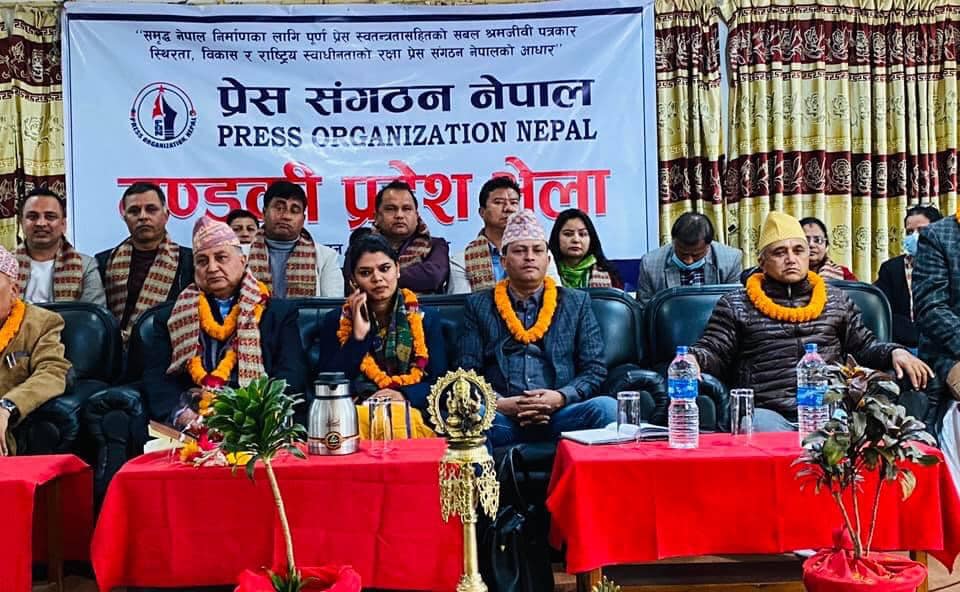 पोखरा, फागुन ३ गते । श्रमजीवि र जनपक्षीय पत्रकारको अगुवा संगठन प्रेस संगठन नेपालको प्रदेश स्तरीय भेला पोखरामा सम्पन्न भएको छ । भेलाले समृद्ध नेपाल निर्माणका लागि ‘पूर्ण प्रेस स्वतन्त्रता सहितको सवल श्रमजिवी पत्रकार, स्थिरता विकास र राष्ट्रिय स्वाधिनताको रक्षा प्रेस संगठनको आधार’ भन्ने मुल नाराका आयोजित भेलाले विभिन्न प्रस्ताव पारित गरेको छ ।
