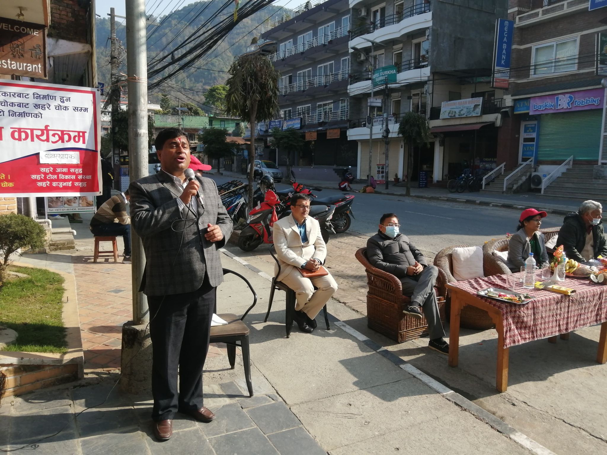 अस्फाल्ट पीच अन्र्तगत गण्डकी प्रदेश सरकारको लगानीमा क्याम्पिङ चोकबाट खहरेचोक सम्मको सडक अस्फाल्ट पीच सुरु भएको छ । ६ सय मिटर उत्त वीच गर्ने कार्यक्रको शुक्रबार गण्डकी प्रदेश सासद राजिब पहारीले शुभारम्भ गर्नुभयो । उक्त सडक दशदिनभित्र अस्फाल्ट पीच गरिसक्ने बताउनुभयो ।उहाँले पर्यटकीय क्षेत्र लेकसाइडका सडकहरु टिकाउ र बलिया बनाउन अस्फाल्ट पीच गरिएको बताउनुभयो । भौतिक पुर्बाधार बिकास मन्त्रालयका सचिव रामचन्द्र श्रेष्ठले सडकहरु ब्यबस्थित बनाउन मन्त्रालयले काम गरिरहेको बताउनुभयो । भौतिक पुर्वाधार बिकास कार्यलायका प्रमुख दिनेश घिमिरे सडक पीचको निगरानी गर्ने बताउनुभयो ।
