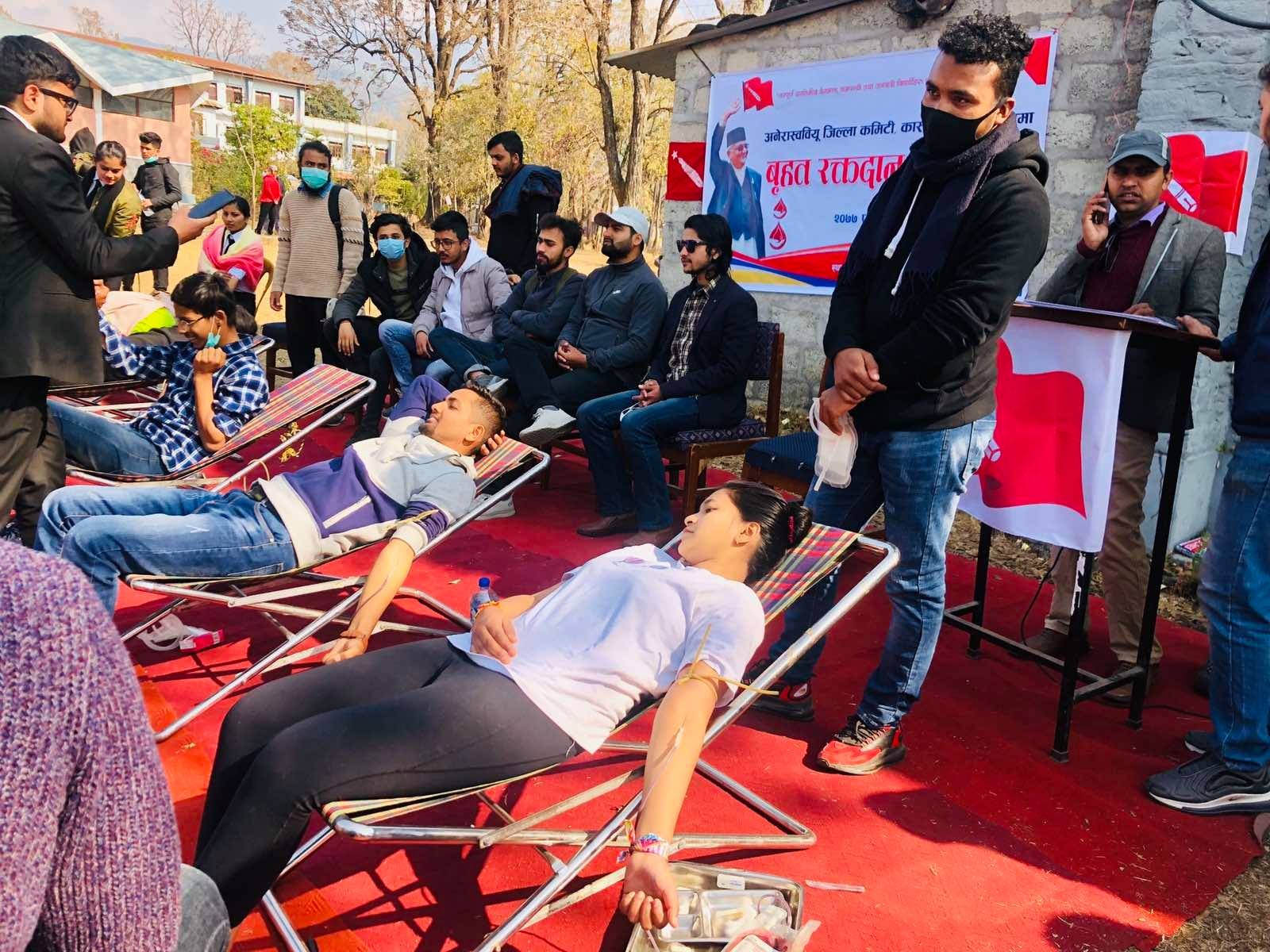 पोखरा, फागुन ८ गते । अनेरास्वबियू कास्की जिल्ला कमिटीको आयोजनामा भएको रक्तदान कार्यक्रम सम्पन्न भएको छ।अनेरास्वबियू केन्द्रिय सदस्य तथा जिल्ला कमिटी संयोजक विवेक देवकोटाका अनुसार १ सय ३३ युनिट रगत संकलन भएको छ ।