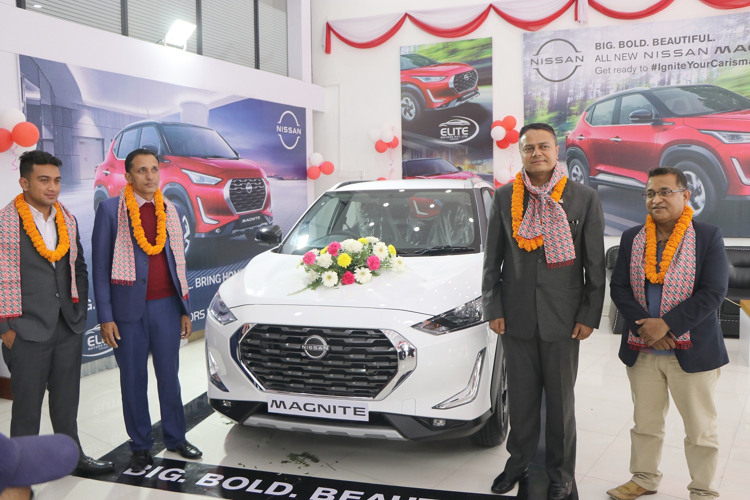 इलाइट मोटर्स प्रा.लि.का प्रवन्ध निर्देशक गोपाल बरालले निशान म्याग्नाइटको बिक्री शुभारम्भ ग्राहक केन्द्रित यात्रामा एउटा अविस्मरणीय कोशेढुंगा हुने बताउनुभयो । ‘विशेष गरी हाम्रो मुल्यवान ग्राहकहरुका लागि बिग, बोल्ड, ब्युटिफुल र क्यारिजम्याटिक निशान म्यागनाइट २९ लाख ४९ हजार रुपैयाँमा बजारमा ल्याएका छौं । ग्राहकहरुको आकांक्षा र उच्च प्रविधिको समायोजन भएको म्यागनाइटले पक्कै पनि नेपाली बजारमा गेम चेन्जरको भुमिका निर्वाह गर्नेमा हामी विश्वस्त छौं,’ उहाँले भन्नुभयो । व्यवस्थित सर्भिस सेन्टर स्थापना गरी कम्पनीले बिक्री पछिको सेवालाई प्राथमिकतामा राखेको उहाँले बताउनुभयो ।