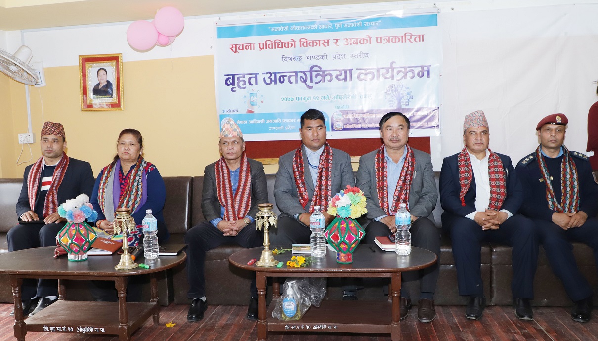 नेपाल आदिवासी जनजाति पत्रकार महासंघ (फोनिज) गण्डकी प्रदेशका अध्यक्ष एमबी आस्था मगरको सभापतित्वमा सम्पन्न कार्यक्रममा संस्थाका सचिव खीमा गुरुङले स्वागत मन्तव्य व्यक्त गरेका थिए भने सदस्य सुनिता रानाले कार्यक्रम सञ्चालन गरेकी थिईन् ।