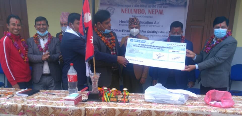 नेलम्बो नेपालका अध्यक्ष एकदेव देवकोटाले विद्यालयको शैक्षिक विकासमा टेवा पुगोस भन्ने उद्धेश्यले सहयोग प्रदान गरेको वताउँदै आगामी दिनहरुमा सहयोग निरन्तर रहने वताएका थिए ।विद्यालय व्यवस्थापन समितिका अध्यक्ष ज्ञानेन्द्र पौडेलको अध्यक्षतामा सम्पन्न भएको कार्यक्रममा प्रधानाध्यापक गुरुप्रसाद सापकोटाले स्वागत गरेका थिए भने कार्यक्रमको सञ्चालन शिक्षक वेदनाथ अधिकारीले गरेका थिए ।