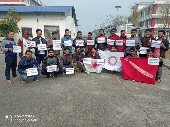 पोखरा, फागुन १६ गते । नेपाल कम्युनिष्ट पार्टी(नेकपा) ओली समुह निकट अनेरास्ववियूले आइतबार पोखराका विभिन्न क्याम्पस अगाडी विरोध प्रर्दशन गरेको छ । नेकपा प्रचण्ड माधव समुहका अध्यक्ष पुष्पकमल दाहाल (प्रचण्ड)ले एक टेलिभिजनमा अन्र्तवाता दिने क्रममा काँग्रेस, जसपा र आफनो समुह मिलेर सरकार बनाउदाँ भारत र चिनलाई कम्फट फिल हुने बताएका थिए ।