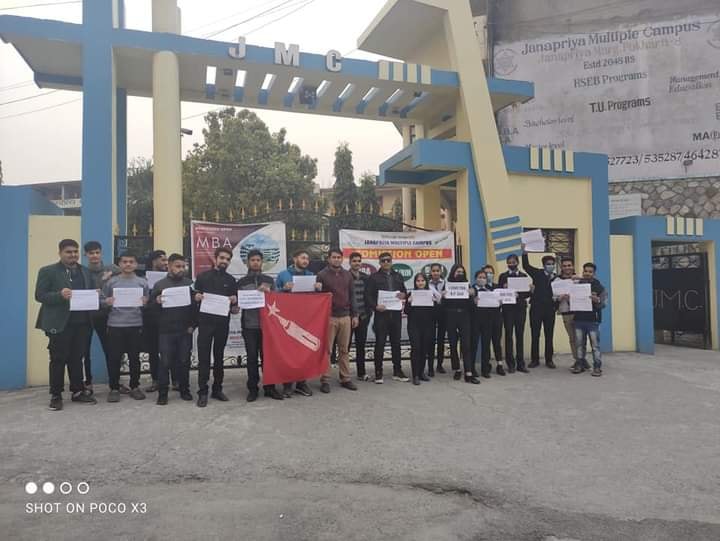 प्रचण्डको अभिब्यक्ति विरुद्ध पोखराका विभिन्न क्याम्पस अगाडी अनेरास्ववियूको प्रर्दशन