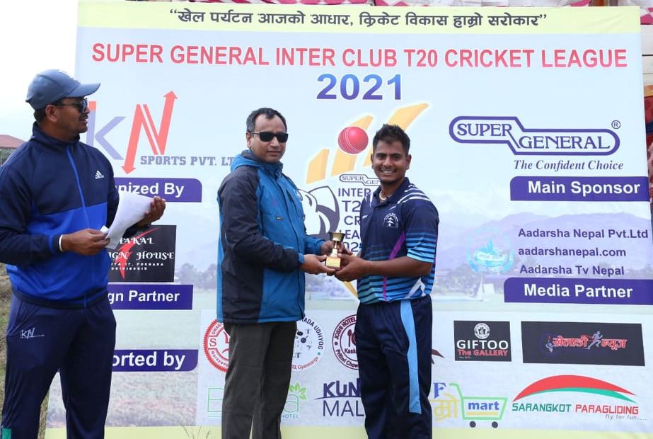 पोखरा, फागुन १९ गते ।चितवन क्रिकेट क्लव पोखरा रंगशालामा जारी सुपर जनरल अन्तर क्लव टी–२० क्रिकेट लिग प्रतियोगितामा समुह ‘क’बाट सेमिफाइनल प्रवेश गरेको छ । बुधबार भएको खेलमा आयोजक सुपर जनरल पोखरालाई १८ रनले पराजित गर्दै चितवनले सेमिफाइनलमा स्थान सुरक्षित बनाएको हो । चितवनले तीन खेलमा जित हाँसिल गर्दै ६ अंकका साथ समुहमा शिर्षस्थान कायम ग¥यो ।