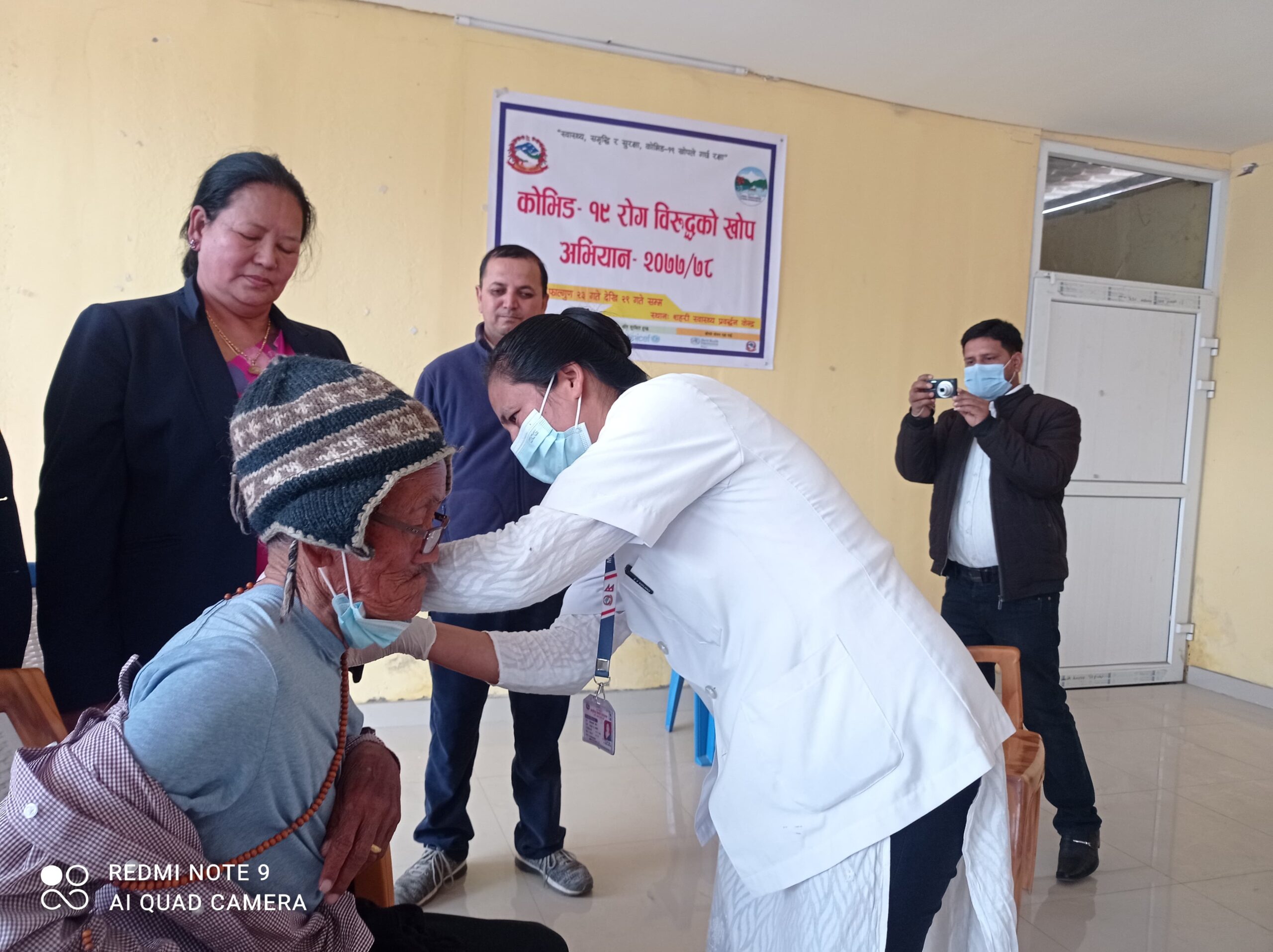 पोखरा, फागुन २३ गते । नेपालमा दोस्रो चरणअन्तर्गत ६५ वर्षभन्दा माथिका ज्येष्ठ नागरिकलाई कोरोनाविरुद्धको खोप लगाउन सुरु भएको छ ।पोखरा महानगरपालिकामा कोरोना भाइरस कोभिड—१९ विरुद्धको खोप अभियान सुरु भएको छ । पोखरा महानगरपालिका ३३ वटै वडामा यो अभियान आइतबारदेखि सुरु भएको हो । पोखरा महानगरको सहरी स्वास्थ्य प्रवद्र्धन केन्द्र नयाँ बजारमा पोखरा ८ निवासी ९९ वर्षीय गौबहादुर गुरुङलाई खोप लगाएर अभियान सुरु गरिएको हो ।