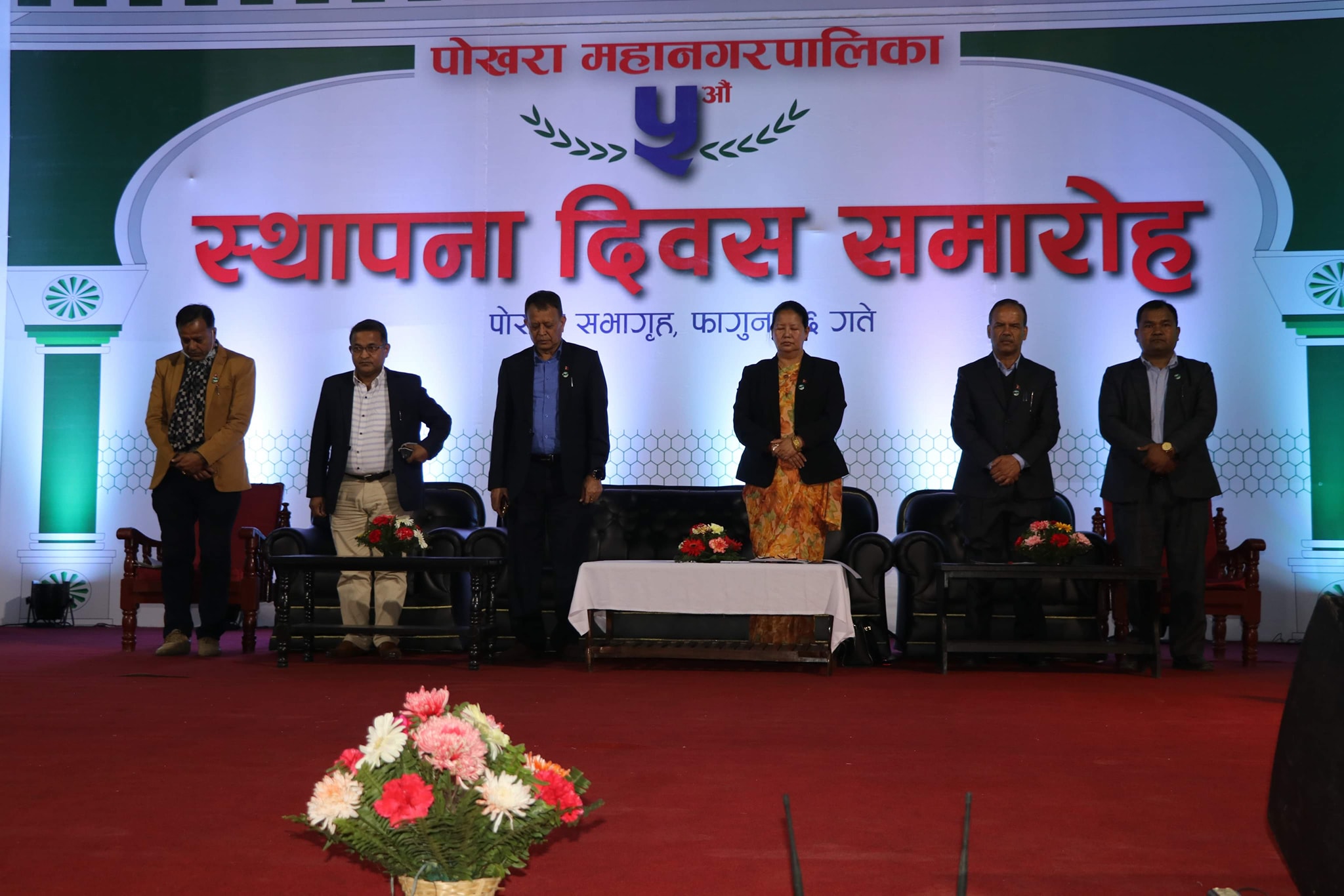 कार्यक्रममा महानगरमा लामो समय सेवा गरेका १३ कर्मचारीलाई दोसल्ला सहित सम्मानपत्र सहित सम्मान गरिएको थियो भने स्थापना दिवसको अवसरमा आयोजना गरिएका भलिबल, फुटबल र ब्याडमिन्टन प्रतियोगिताका विजेता कर्मचारी र जनप्रतिनिधिलाई गण्डकी प्रदेशका मुख्यमन्त्री पृथ्वीसुब्बा गुरुङ लगायतले पुरस्कार वितरण गर्नुभएको थियो । २०७३ साल फागुन २७ गते उपमहागनरपालिकाबाट पोखरा महानगरपालिका घोषणा भएको थियो । २७ गते शिवरात्री परेको सार्वजनीक विदा भएकाले महागनरले बुधबार स्थापना दिवस मनाएको हो ।