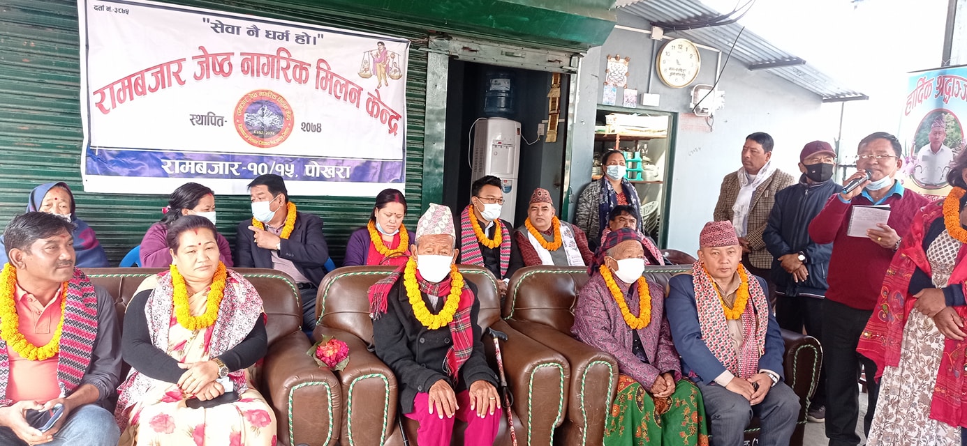 रामबजार जेष्ठ नागरिक मिलन केन्द्रमा आयोजित कार्यक्रममा केन्द्रका शुभचिन्तक हुमबहादुर गुरुङ तमु धिं नेपालको अध्यक्षमा चयन, केन्द्रकी आजीवन सदस्य रामबजार क्षेत्रकै पवित्र गुरुङ र भरत केसी पोखरा उद्योग वाणिज्य संघको निर्वाचनमा सदस्य पदमा निर्वाचित भएकोमा बधाई, केन्द्रका जेष्ठ नागरिकहरुलाई साप्ताहिक खाजा प्रदान गर्दै आउनुभएका समाजसे विश्व तण्डुकार लगायत सहयोगीहरुलाई सम्मान र गत चैत्र महिनादेखि कोभिडको महामारी शुरु भए पश्चात केन्द्रको १० दिवंगतहरुको स्मृतिमा श्रद्धाञ्जली अर्पण गरिएको थियो। कार्यक्रममा प्रमुख अतिथि केन्द्रका सबैभन्दा जेष्ठ ९९ वर्षिय गौप्रसाद गुरुङ र ९१ वर्षिया लालश्री गुरुङलाई सम्मान गर्नुभएको थियो।