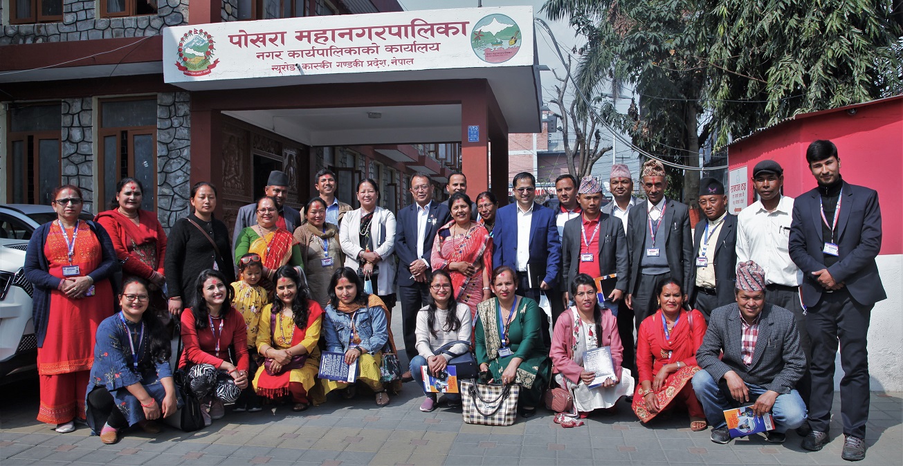 पोखरा, चैत २ गते । धुलिखेल नगरपालिकाका जनप्रतितिधिलाई पोखरा महानगरपालिकामा स्वागत गरिएको छ ।धुलिखेल नगरपालिका उपप्रमुख विमला शर्माको नेतृत्वमा आएको टोलीलाई पोखरा महानगरका प्रमुख मानबहादुर जिसी, उपप्रमुख मञ्जुदेवी गुरुङ र प्रमुख प्रशासकीय अधिकृत महेश बरालले स्वागत गर्नुभयो ।