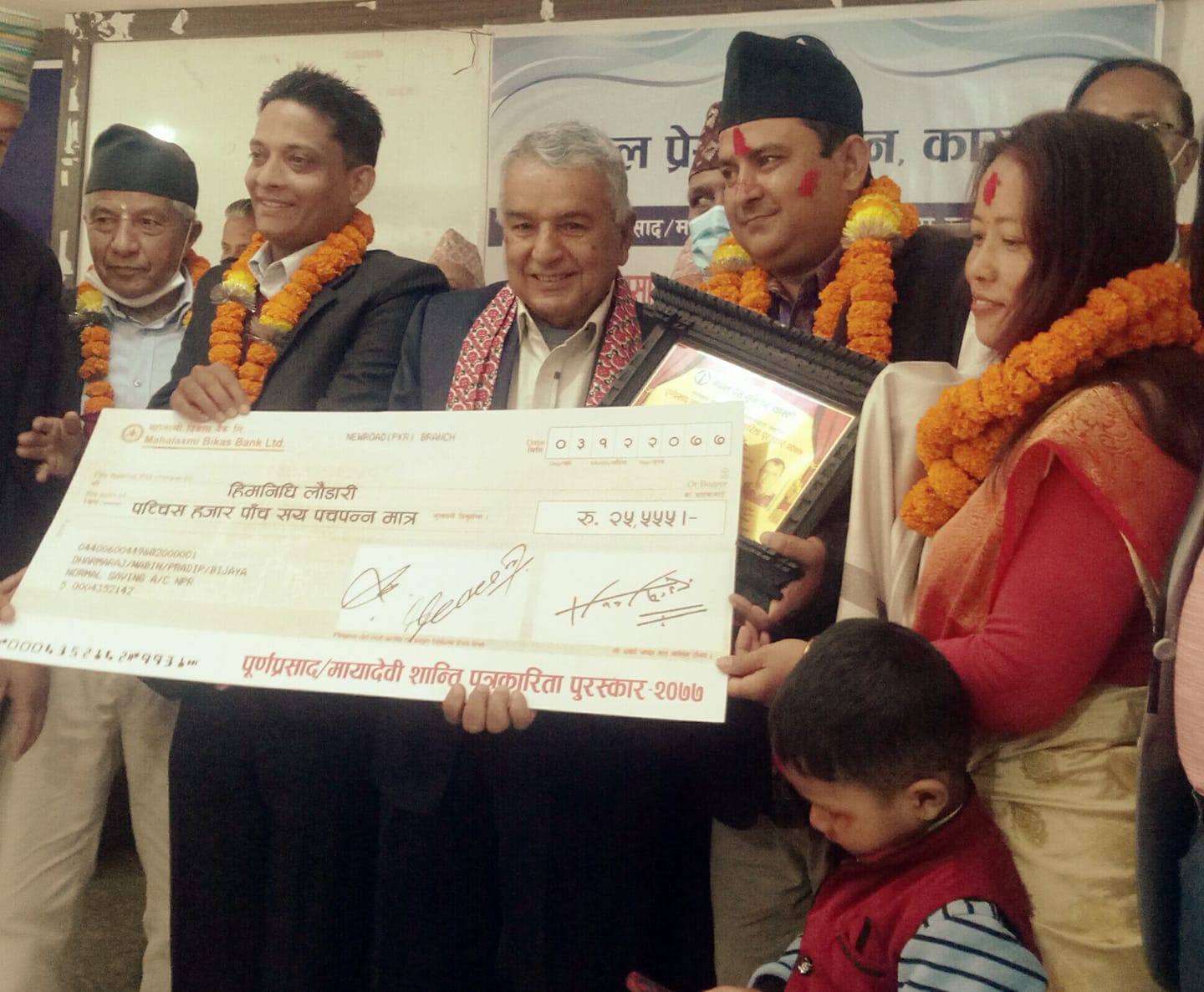 पूर्णप्रसाद÷मायादेवी बराल प्रतिष्ठानद्वारा स्थापना गरिएको सो पुरस्कारको राशि नगद २५ हजार पाँच सय ५५ सहित कांग्रेस वरिष्ठ नेता पौडेलले उनलाई पुरस्कृत गरे ।