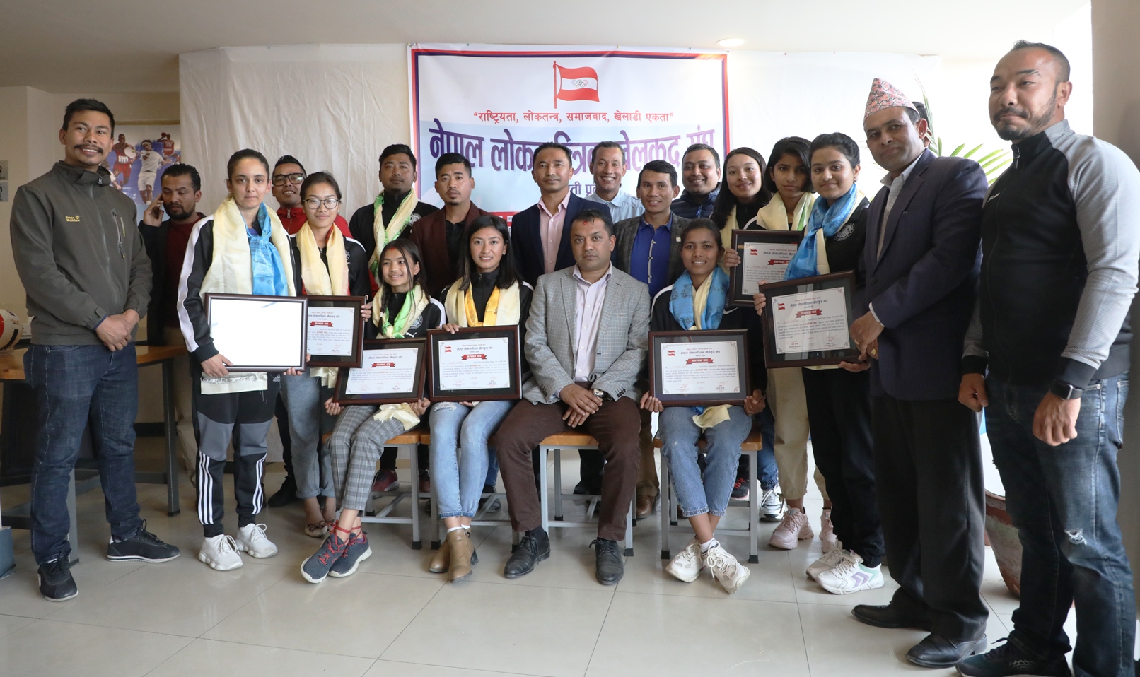 प्रतिस्पर्धामा जानेबेला खेलाडीहरुलाई बिदाई गर्दै नेपाल लोकतान्त्रीक खेलकुद बागमती प्रदेशका संयोजक दीपक गुरुङ्गले टोलीलाई बिजयी भएर फर्केको अवस्थामा हौसला स्वरुप नगद ३० हजारले सम्मान गर्ने जुन घोषणा गरेका थिए त्यसै घोषण अनुरुप टोलीलाई सम्मान गरिएको हो ।कार्यक्रममा नेपाल लोकतान्त्रीक खेलकुद संघका केन्द्रिय सचिव मनिष जोशी (राम), सदस्य कुमार बस्नेत, राजु बिक्रम थापा, दोलखा क्षेत्र नं. १ का उपसभापती राजन अधिकारी, बागमती प्रदेशका सचिव दामोदर भट्टराई (बद्री), कोषाध्यक्ष कविराज नेगी लगायतको उपस्थिती रहेको थियो ।