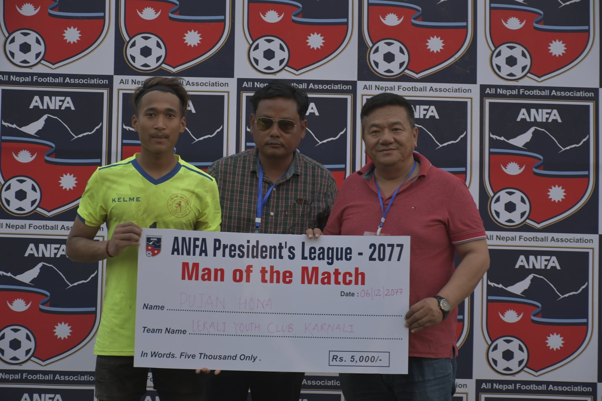चैतको १५ गते सम्म चल्ने प्रतियोगितामा प्रदेश नम्बर १ को सैनिक फुटबल क्लब झापा, प्रदेश नम्बर २ को मनकामना युवा क्लब रौतहट, प्रदेश नम्बर ३ को धादिङ समाज धादिङ, प्रदेश नम्बर ४ बाट त्रिवेणी युवा क्लब लमजुङ, लुम्बिनी प्रदेशबाट धम्बोझी युवा क्लब बाँके, प्रदेश नम्बर ६ को लेकाली युवा क्लब जुम्ला र सुदुर पश्चिम प्रदेशको स्टार सिटी युवा क्लब कैलालीले प्रतिस्पर्धा गरिरहेका छन ।प्रतियोगिताको विजेताले १० लाख रुपैयाँ र उपविजेता टोलीले ५ लाख रुपैयाँ पाउनेछन ।अखिल नेपाल फुटबल संघले आयोजना गरेको पहिलो प्रतियोगिता हो एन्फा प्रेसिडेन्ट लिग । यस प्रतियोगिताको शिर्ष चार टोलीले राष्ट्रिय लिगमा प्रतिस्पर्धा गर्नेछन ।
