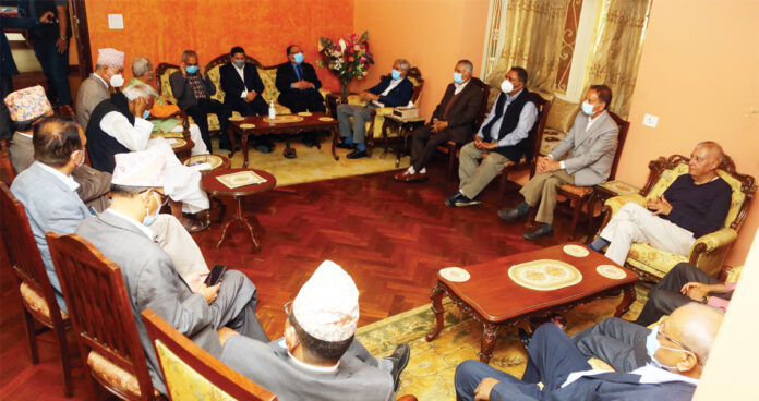 बैठकमा कांग्रेसबाट देउवा, रामचन्द्र पौडेल, शशांक कोइराला, विजयकुमार गच्छेदार, विमलेन्द्र निधि, माओवादी केन्द्रबाट अध्यक्ष पुष्पकमल दाहाल ‘प्रचण्ड’, नारायणकाजी श्रेष्ठ, जसपाबाट महन्थ ठाकुर, बाबुराम भट्टराई र उपेन्द्र यादवलगायतका नेता सहभागी थिए । यो खबर आजको राजधानी दैनिकमा छ ।