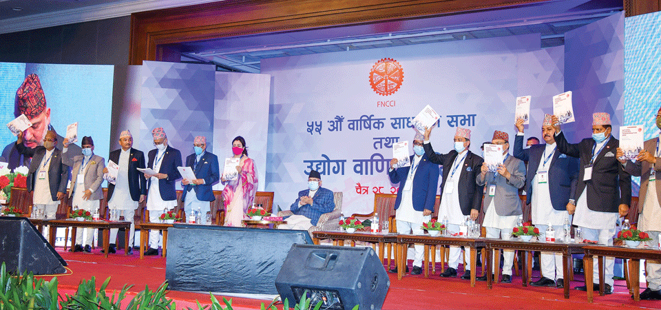 काठमाडौँ, चैत २९ गते । नेपाल उद्योग वाणिज्य महासङ्घको वर्तमान कार्यसमितिले प्रतिबद्धता जनाएअनुसार आर्थिक रूपान्तरणको मार्गचित्र सार्वजनिक गरेको छ ।मुलुकको आर्थिक समृद्धिका लागि महŒवपूर्ण भूमिका निर्वाह गर्ने निजी क्षेत्रले अबको दस वर्षमा के कस्ता गतिविधिमार्पmत थप योगदान र परिणाम निकाल्न सकिन्छ भन्ने लक्ष्यसहित महासङ्घले आफ्नो ५५औँ वार्षिक साधारण सभामा राष्ट्रिय आर्थिक रूपान्तरण–२०३० सार्वजनिक गरेको हो ।