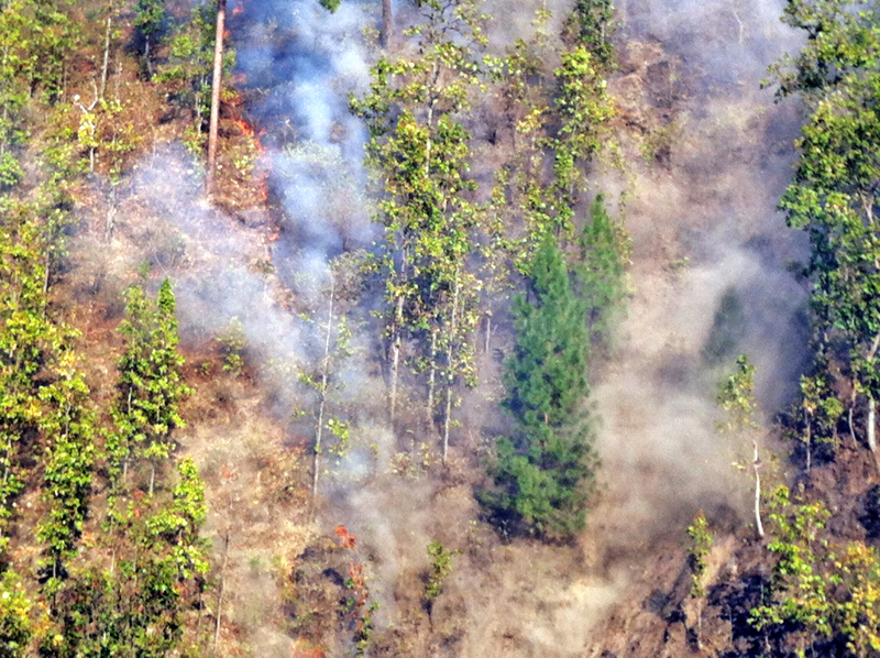 कालीकोट जिल्लाका ६० वनमा आगलागी भएको छ । जिल्ला वन कार्यालय कालीकोटका अनुसार हालसम्म ५६ सामुदायिक वन र चार सरकारी वनमा आगलागी भएको छ । जिल्लाका अधिकांश सामुदायिक र सरकारी वन डढेलोले सखाप भएपछि पूरै वन क्षेत्र काला पहाडमा परिणत भएको छ ।