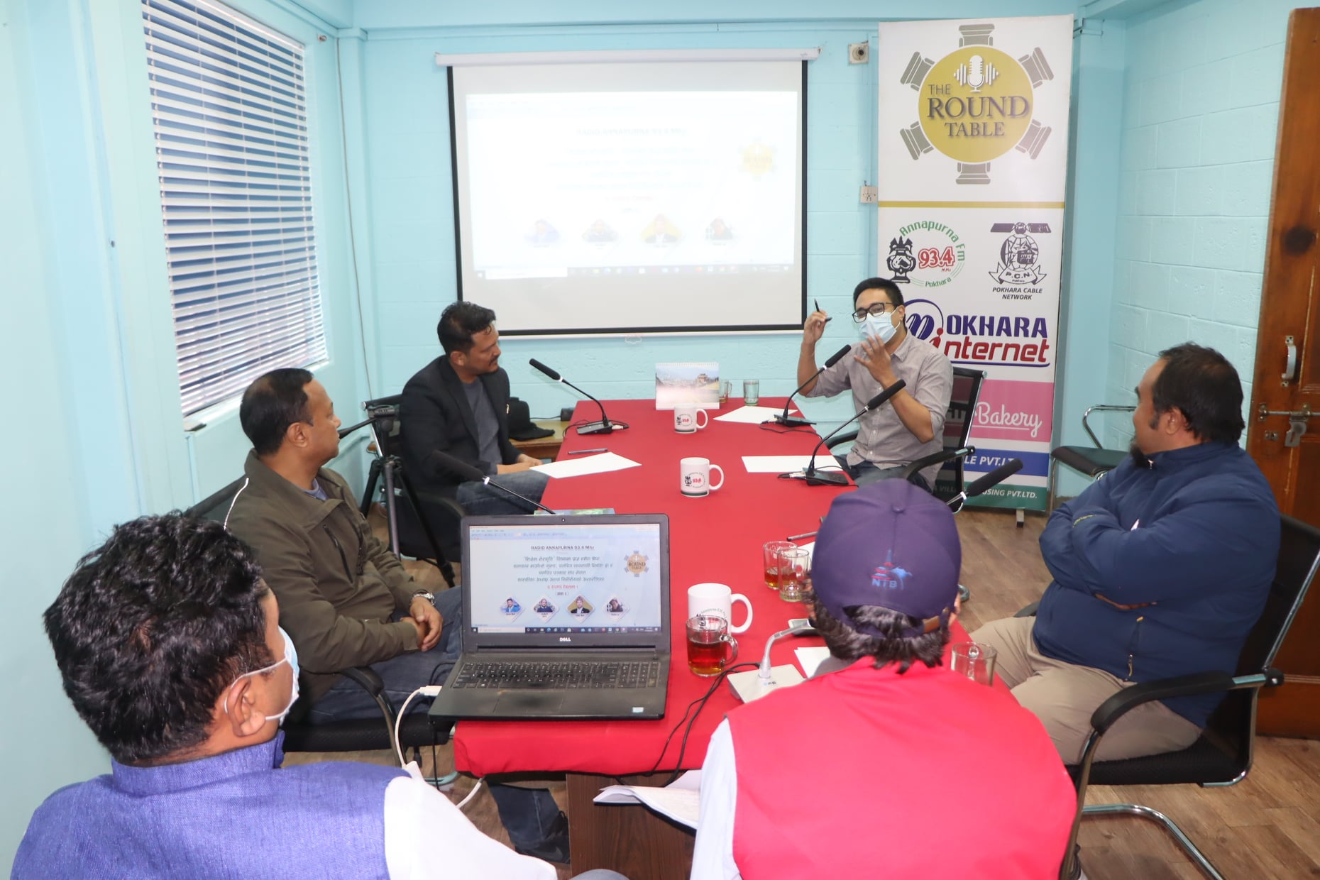 पोखरा, बैशाख ६ गते । पोखराबाट प्रसारित लोकप्रिय रेडियो अन्नपूर्णको प्रस्तुति द राउण्ड टेबलमा सिनेमा सँस्कृति विषयमा चर्चा गरिएको छ । सोमबार बिहान प्रसारण हुने कार्यक्रममा वक्ताहरु कवि प्राज्ञ रमेश श्रेष्ठ, कलाकार तथा निर्देशक माओत्से गुरुङ, चलचित्र व्यवसायी निकेश द्वा र चलचित्र पत्रकार संघ नेपाल कास्कीका अध्यक्ष अरुण गिरीले आ—आफ्नो धारणा राखेका छन् । उनीहरुलाई सहजीकरण प्रस्तोता वाशुदेव मिश्रले गरेका थिए ।