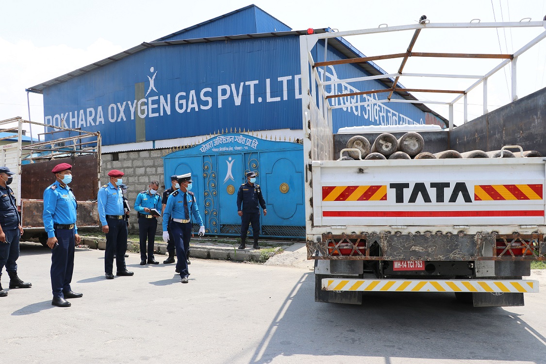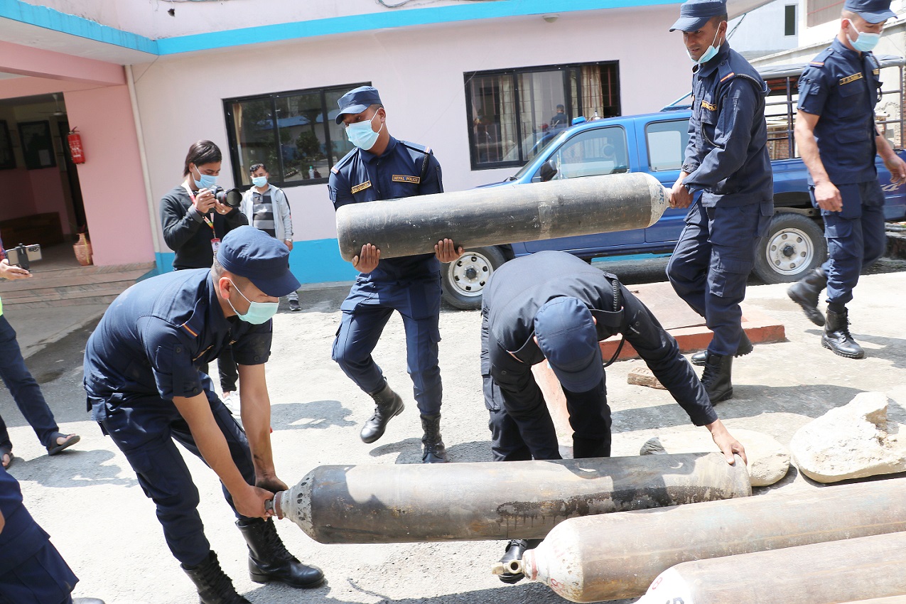 बिश्वव्यापी रुपमा फैलिदै गईरहेको कोरोना भाईरस संक्रमणलाई ध्यानमा राखी अस्पतालहरुमा अक्सिजन सिलिण्डरहरुको अभाव नहोस भन्ने उद्देश्यले कास्की जिल्ला अन्तरगत बिभिन्न मेटल कम्पनी, वर्कसप, ईन्जिनियरिङ वर्कसप, मोटर ग्यारेज, ग्यास वेल्डिङ तथा अन्य कम्पनीहरुसंग रहेका अक्सिजन ग्यास सिलिण्डरहरु पछी सम्बन्धित संस्था तथा कम्पनीहरुलाई नै फिर्ता गर्ने गरी जिल्ला प्रहरी कार्यालय कास्की तथा मातहत प्रहरी कार्यालयहरुले संकलन गरी कम्पनीहरुलाई हस्तान्तण गरिएको जिल्ला प्रहरीका कार्याल कास्कीका सुचना अधिकारी सुवास हमालले जानकारी दिनुभयो ।
