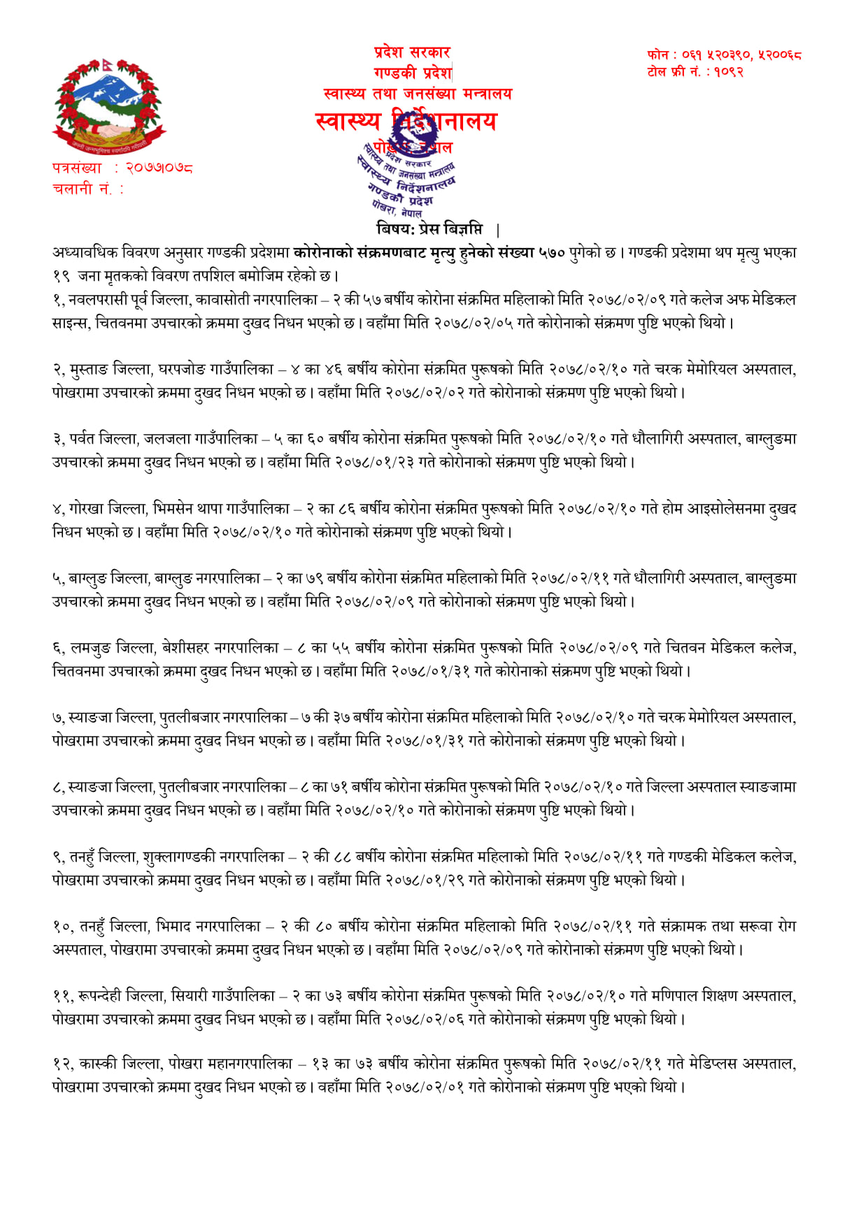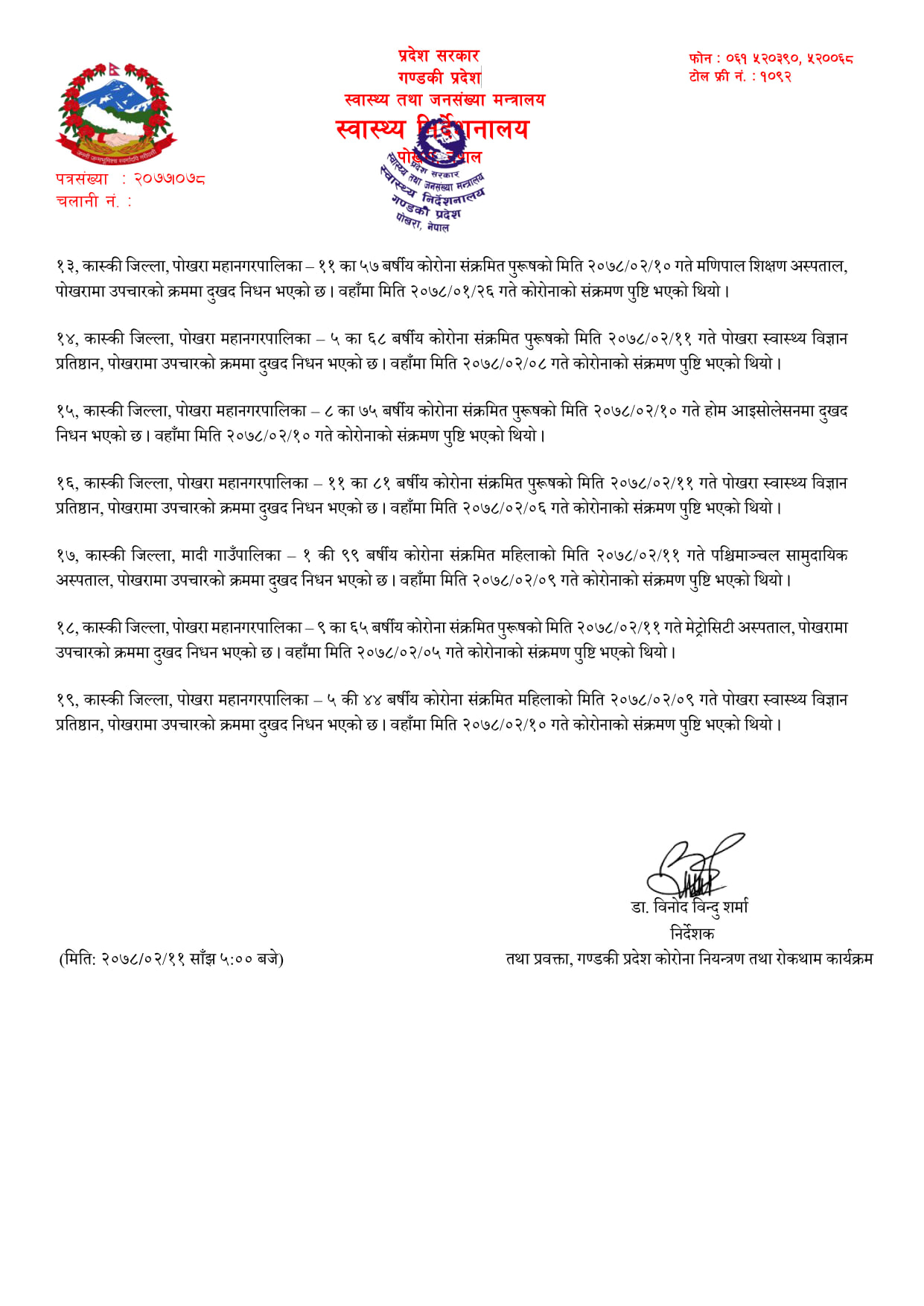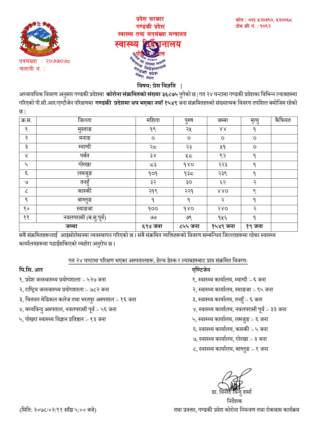 कास्कीका ९ सहित गण्डकीमा १९ संक्रमितको मृत्यु, अहिलेसम्मकै धेरै १५४९ नयाँ संक्रमित थपिए
