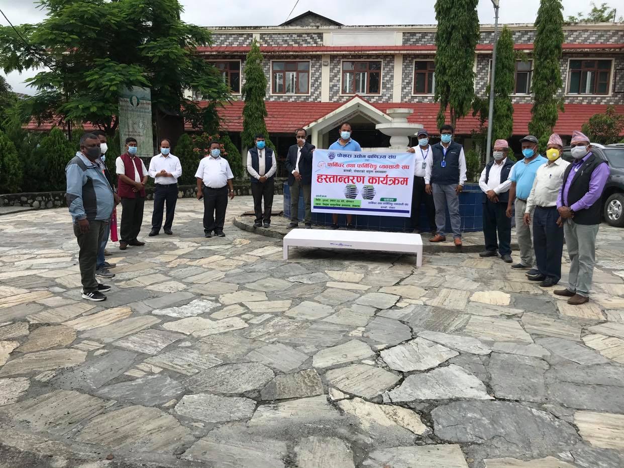 नेपाल फर्निचर तथा फर्निसिङ व्यवसायी संघका केन्द्रीय अध्यक्ष युवराज पौडेलले अस्पतालका प्रमुख डाक्टटर प्रतिमा कोइरालालाई ती खाट हस्तान्तरण गरेका हुन् । कार्यक्रममा पोखरा उद्योग वाणिज्य संघका कोषाध्यक्ष बलराम आचार्य, संघका कार्यसमिति सदस्य तथा फर्निचर तथा फर्निसिङ व्यवसायी संघ पोखराका पूर्वअध्यक्ष हिरामणि पण्डित, पोखरा च्याम्बर्सका उपाध्यक्ष ज्ञानबहादुर नेपाली,पोखरा महानगर वडा नम्बर २७ का अध्यक्ष पूर्णबहादुर गुरुङ, ३० का वडाध्यक्ष श्रीराम पोखरेल, महानगर स्वास्थ्य महाशाखाका प्रमुख हेमन्त शर्माको पनि उपस्थिति रहेको थियो ।