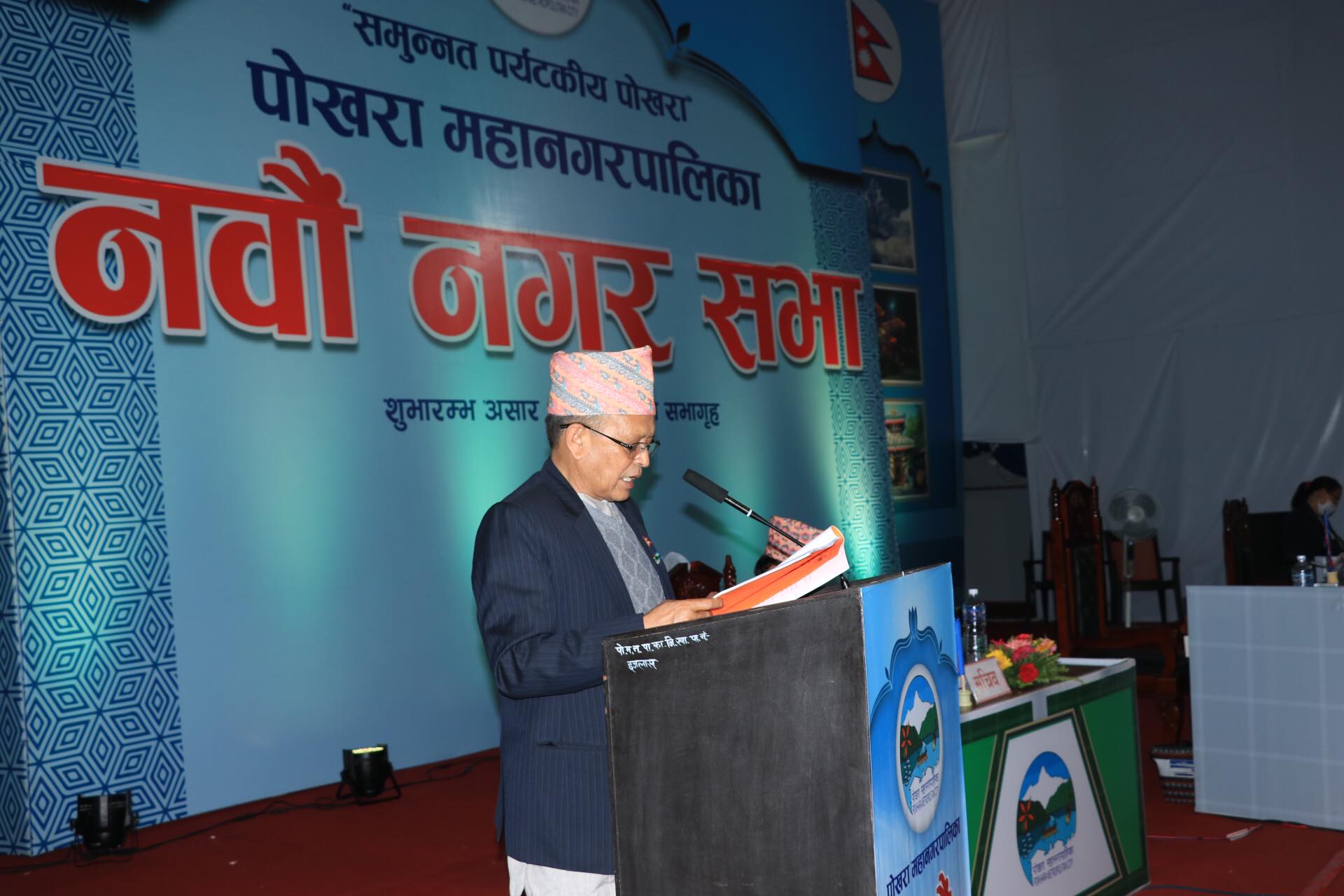 Pokhara, June 24: The Pokhara Metropolitan City has presented its policies and programmes for the fiscal year 2021/22. Pokhara Mayor Man Bahadur GC presented it to the ninth municipal assembly on Wednesday.According to the metropolis, the tabled policy document focuses on infrastructure, tourism and agriculture. It also seeks to continue with the old development projects. With regard to COVID-19 control, the city will focus on the management of quarantines and isolations, recruitment of manpower, Polymerase Chain Reaction (PCR) testing and contact tracing. It will also provide risk allowance to frontline health workers, the document states.