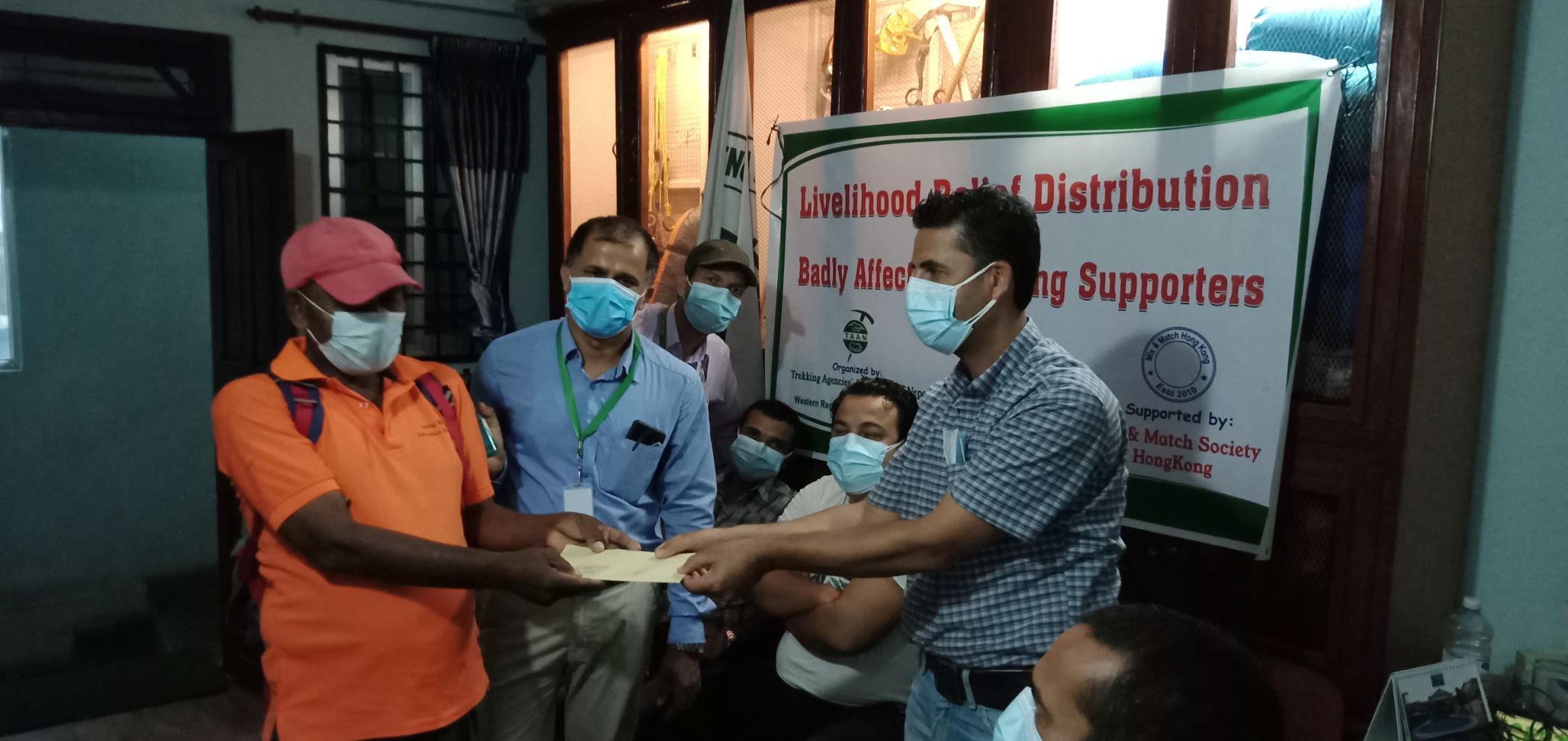 अत्यन्त बिपन्न बर्गका त्यस्ता पदयात्रा मजदुरहरुलाई लक्षीत गरि तत्काल राहत बितरण गरिएको छ । ७७ जना टे«किङ सहयोगी मजदुरहरुलाई  ५ हजार रुपैंयाँका दरले वितरण गरिएको छ ।टान पोखराको आयोजना, टान केन्द्रका अध्यक्ष खुमबहादुर सुबेदीको समन्वय र हङकङ स्थित मिक्स एन्ड म्याच कम्युनिटी अध्यक्ष दिननाथ  बगालेको आर्थिक सहयोगमा राहत वितरण गरियो ।