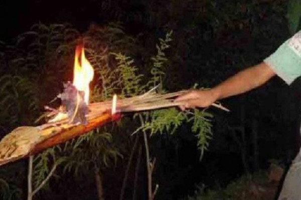 प्राचीन प्रचलनअनुसार कागभलायो, कुकुरडाइनो, लुतेझार, पानीसरो आदि औषधीय बनस्पतिका साथै कागती, निबुवा, अम्बा, अनार, नासपाती आदि फलफूलसहित कण्डारक नामक राक्षसको पूजा गरी घरको चारैतिर बलिरहेको अगुल्टो फ्याँक्ने गरिन्छ । लुतो फ्याँक्दा नाङ्लो ठटाउने, शङ्ख फुक्ने, घण्ट बजाउने, ढिकी कुट्ने र एकछिन घरको ढोका बन्द गर्ने चलन छ ।