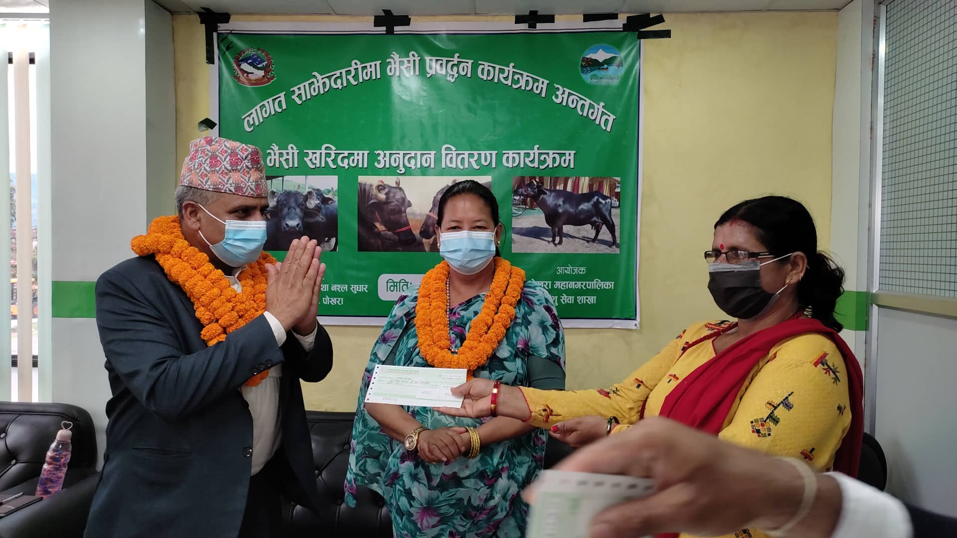 २०७७, ०७८ को स्विकृत बार्षिक कार्यक्रम अनुसार लागत साझेदारीमा भैसी प्रबद्र्धन कार्यक्रम अन्र्तगत ५० जना कृषकलाई जनही ३४ हजार १ सय २४ का दरले भैसी खरिदमा अनुदान वितरण गरिएको पशुसेवा शाखाका प्रमुख नवराज अधिकारीले बताए । पोखरा महानगरपालिकाका उप—मेयर मन्जुदेवि गुरुङको अध्यक्षतामा कार्यक्रम सम्पन्न भएको थियो ।
